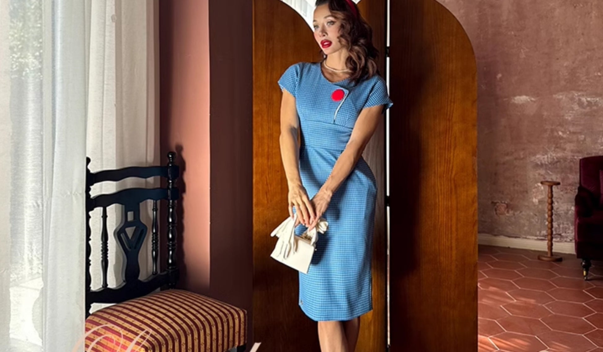 Le Palais Vintage Classic Red and Blue Contrasting Small Plaid Dress-RINDOU.