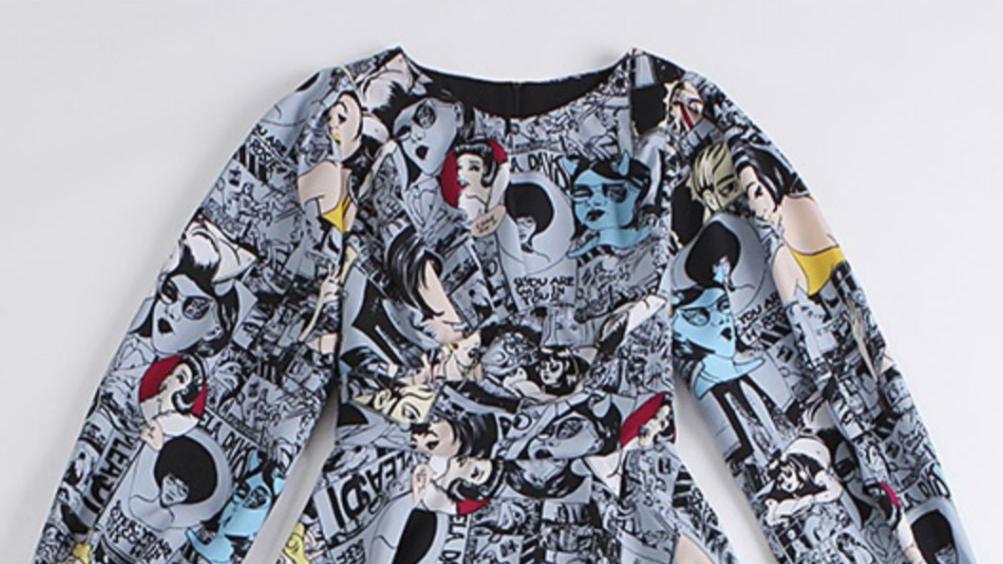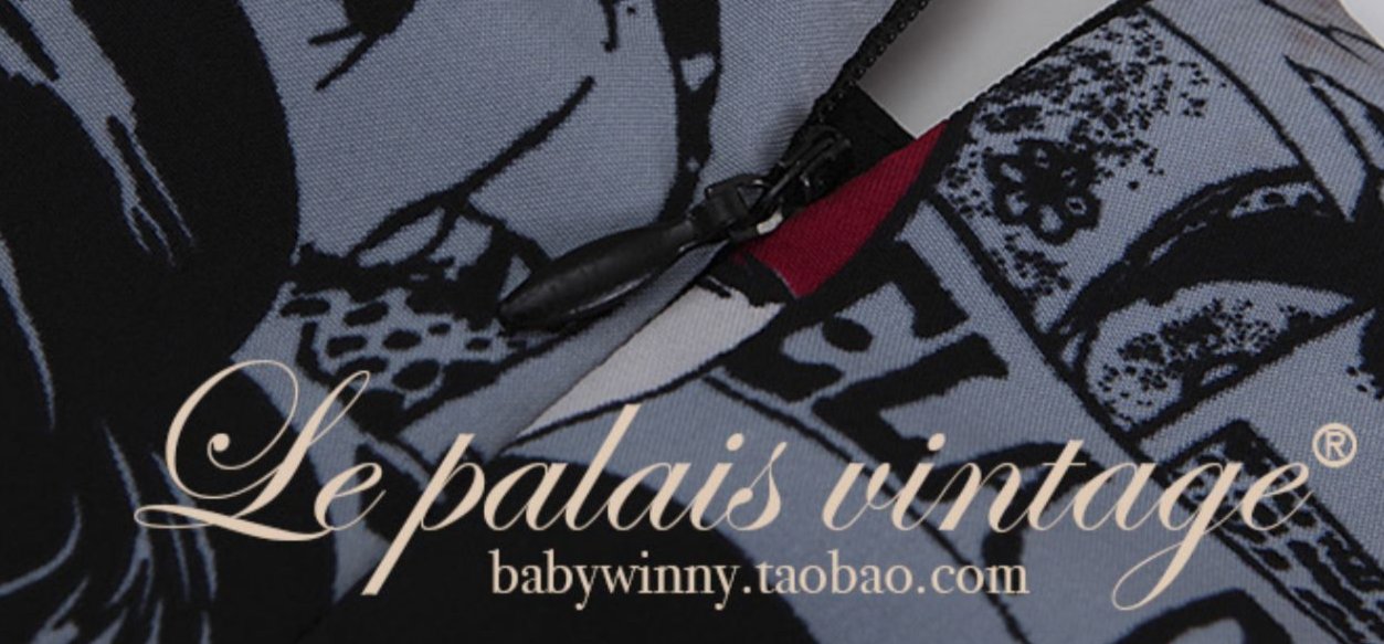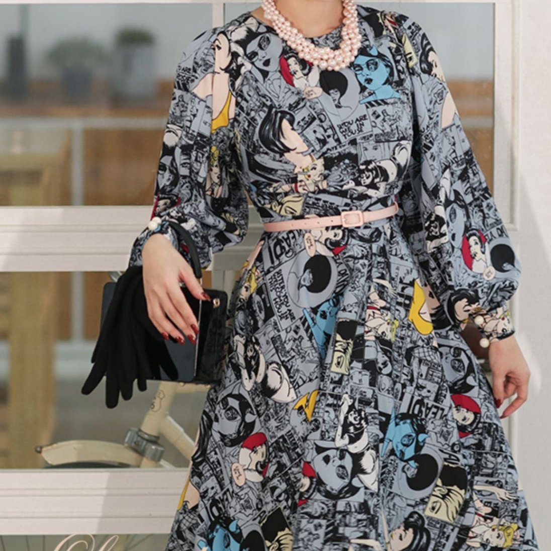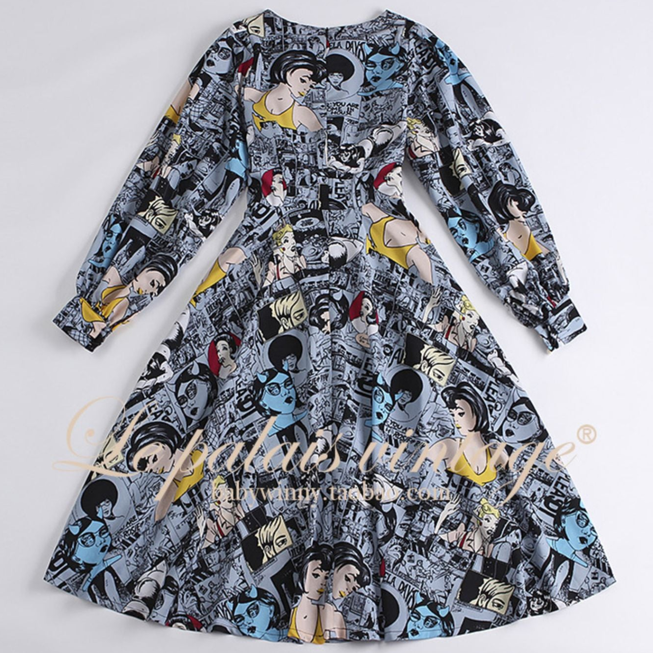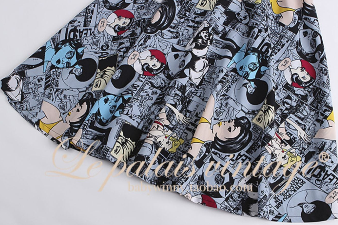Le Palais Vintage Elegant Comics Design lantern Sleeve Dinner dress-Martha.