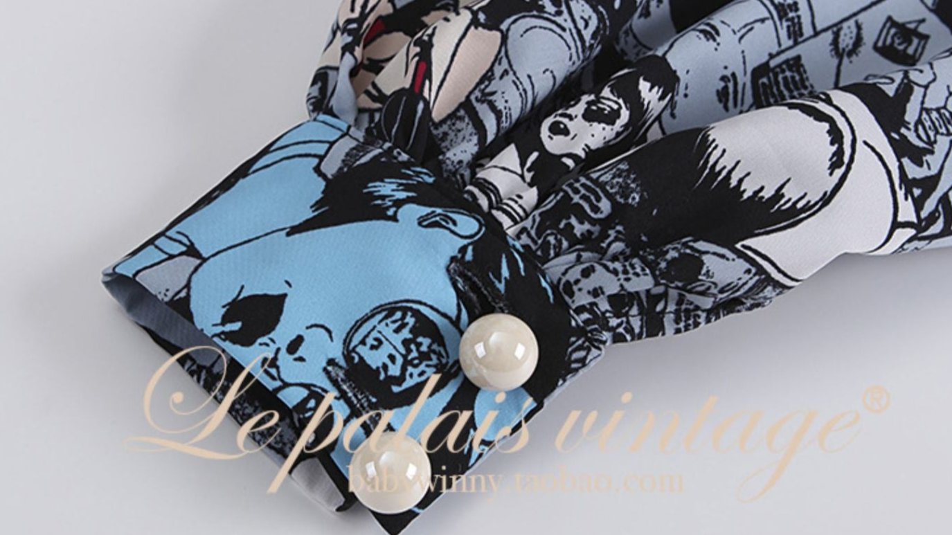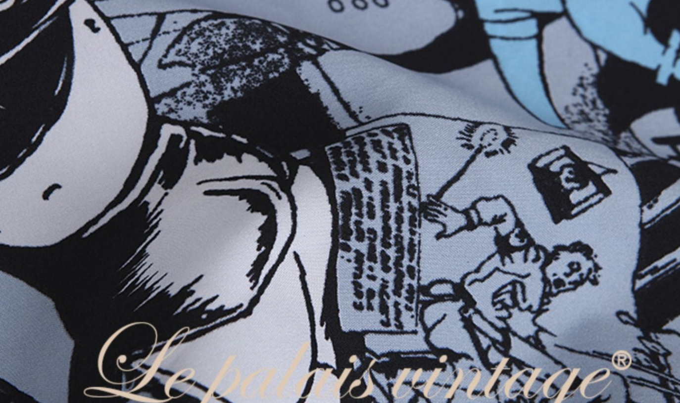 Transform into a work of art with our elegant Martha dress from Le Palais Vintage. Featuring a vintage-inspired comics design and delicate lantern sleeves, this dress will add a touch of beauty and sophistication to any occasion. Show off your unique style and be the center of attention with this breathtakingly beautiful piece.