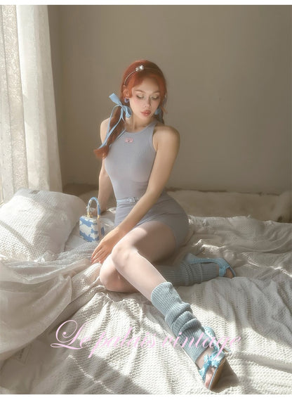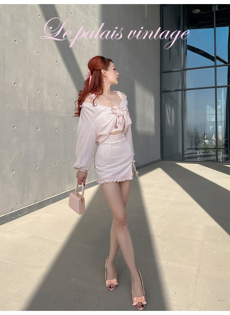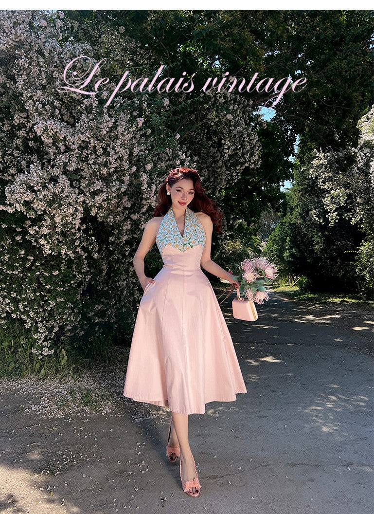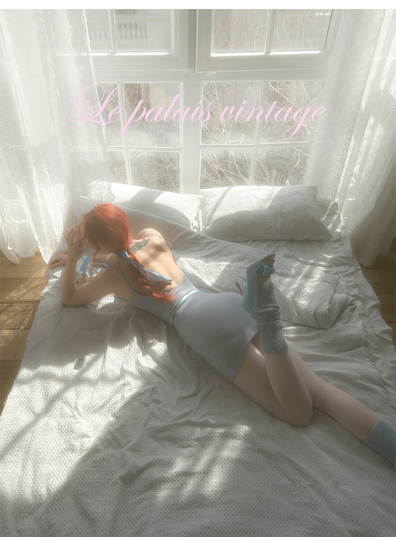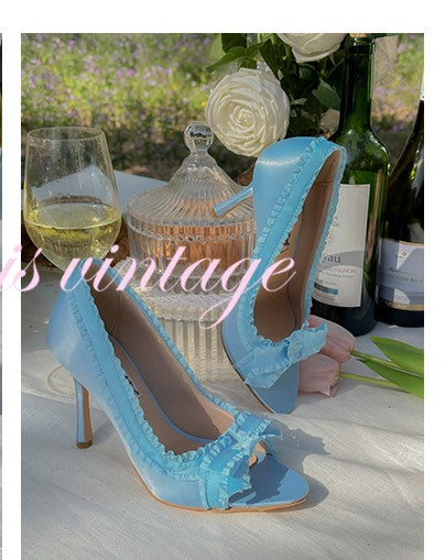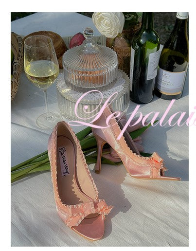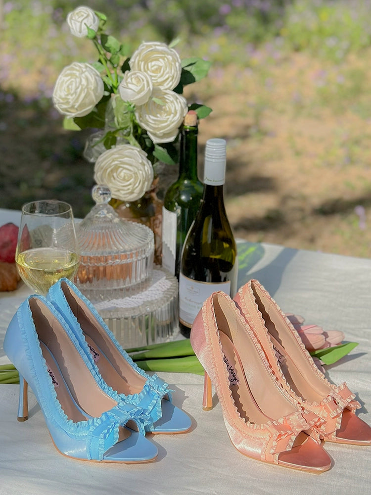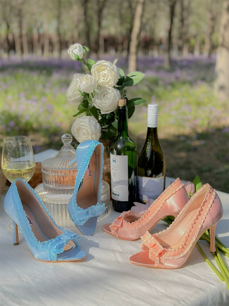 Le Palais Vintage Elegant Lace Pink Blue Fish Mouth Satin Pumps-Garby