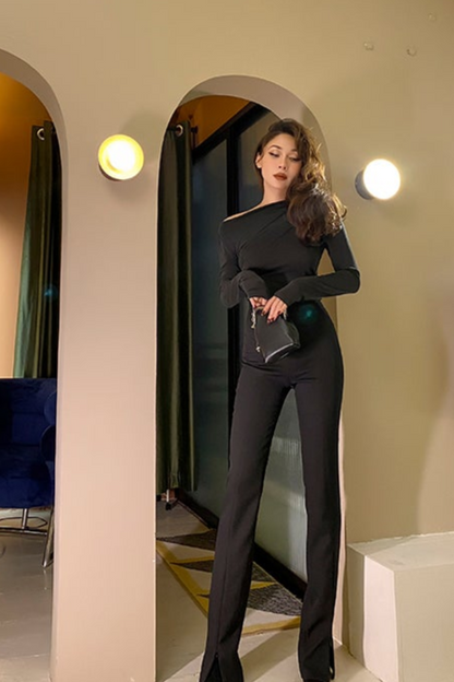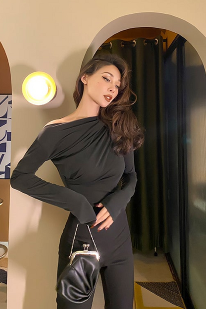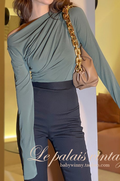 Le Palais Vintage Elegant Long Sleeves Asymmetrical Dinner Party Shirt-Benn.