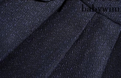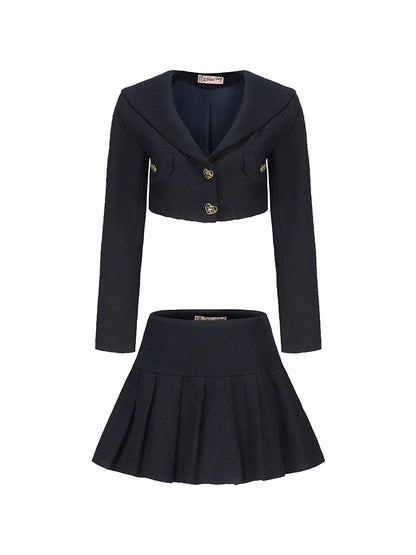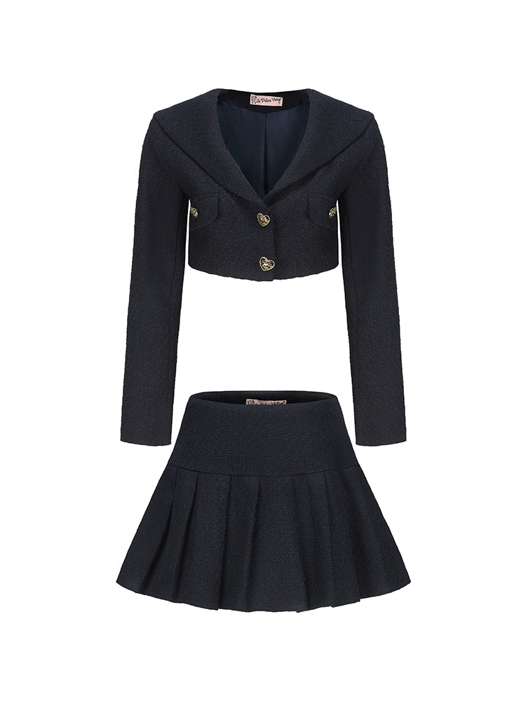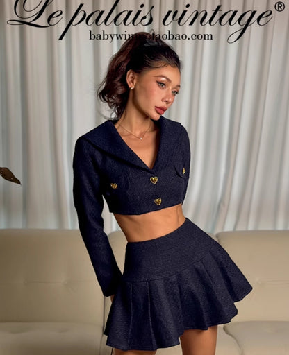 Le Palais Vintage Elegant Navy Collar Short Jacket + Chic Pleated Skirt-MARYANN.