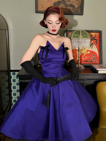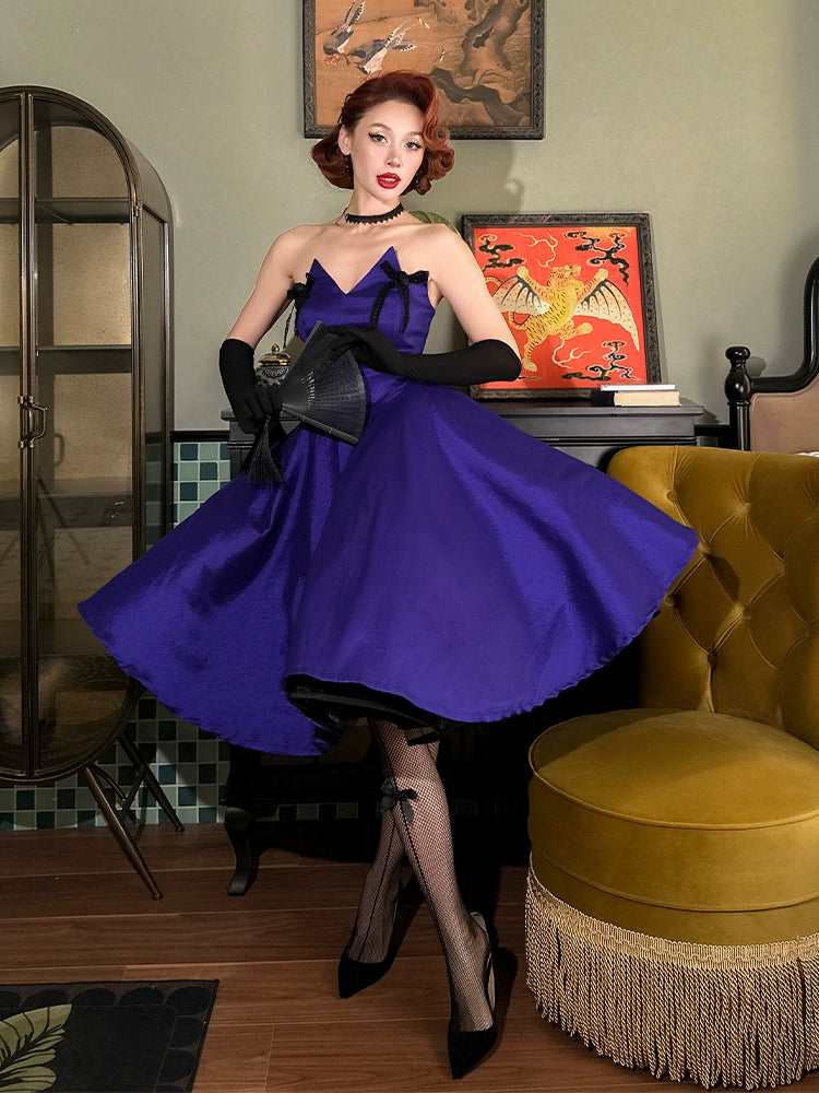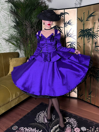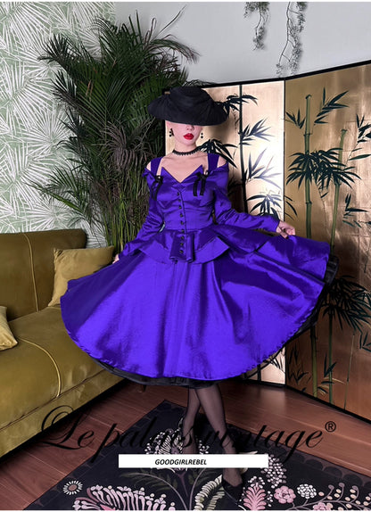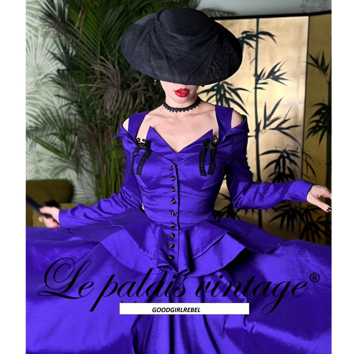 Treat yourself to a truly luxurious experience with our Le Palais vintage elegant purple strapless bodice-style gigantic dress. This breathtakingly glamorous purple hue combined with the strapless bodice-style and its exquisite details make for a show-stopping look. Whether for an evening event or a ball, this dashingly classy dress will make you feel sophisticated, classy, and gorgeous.