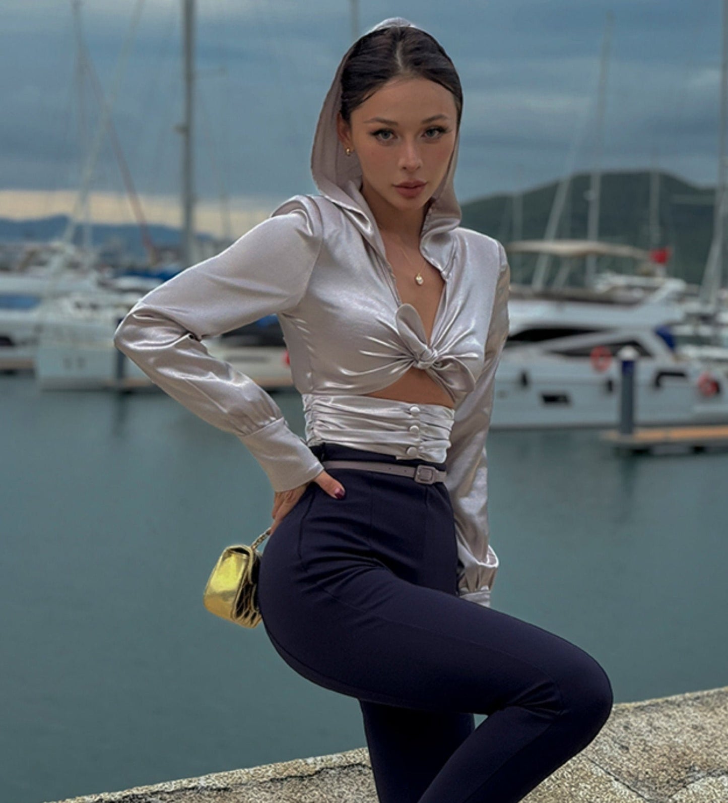 Indulge in luxury with Le Palais Vintage's Elegant V-Neck Bow Long Sleeve Top and Chic Trouser set. Designed with a relaxed fit, this outfit exudes sophistication and exclusivity. Perfect for those who appreciate tasteful, elegant fashion. Elevate your wardrobe with this must-have set.
