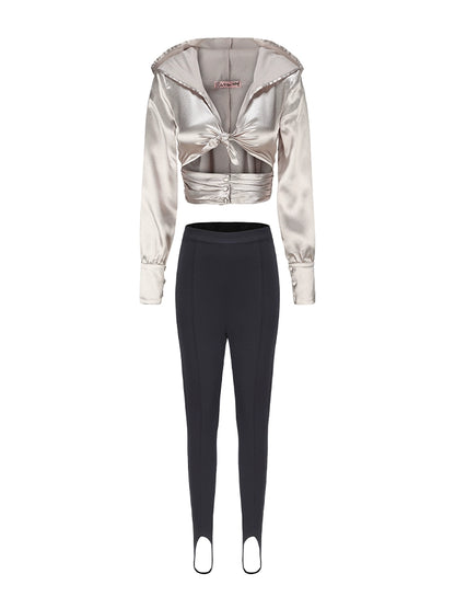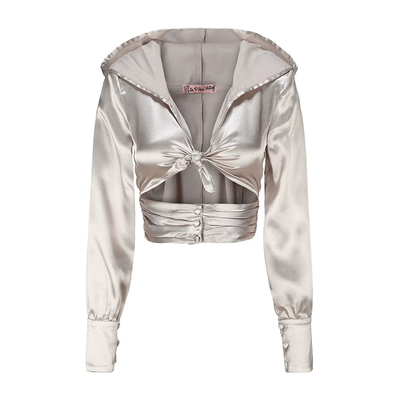 Le Palais Vintage Elegant V-Neck Bow Long Sleeve Top/Chic pants-Mama.