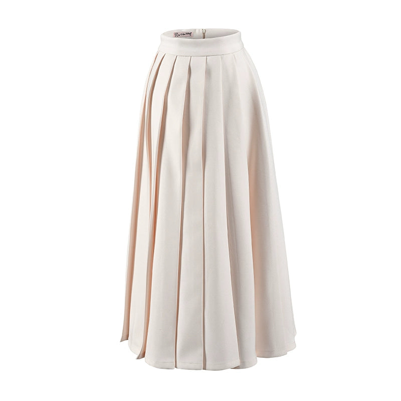 Le Palais Vintage Elegant White High Waist midi Pleated Skirt-Purity
