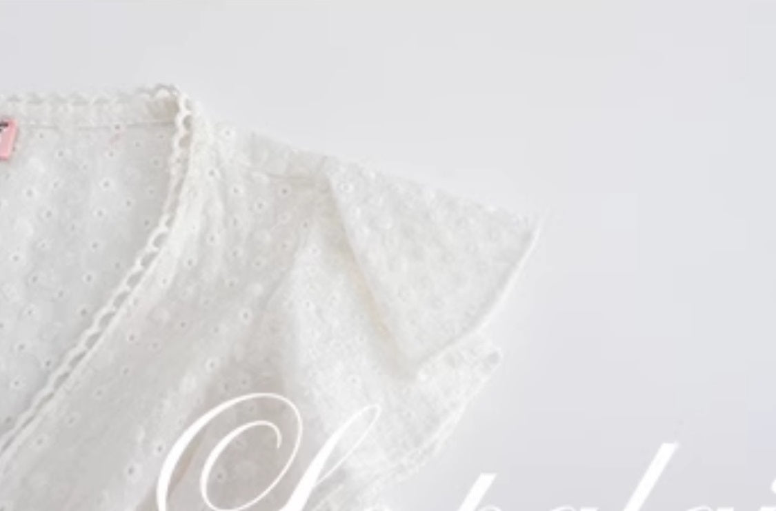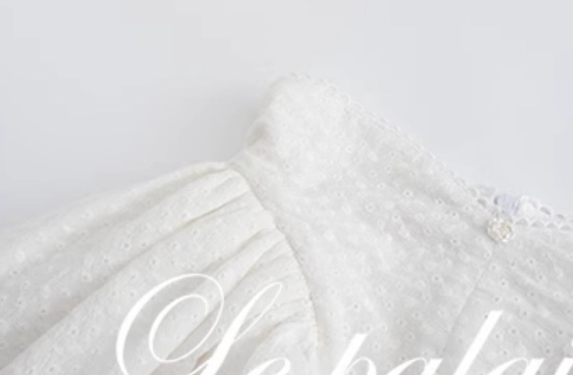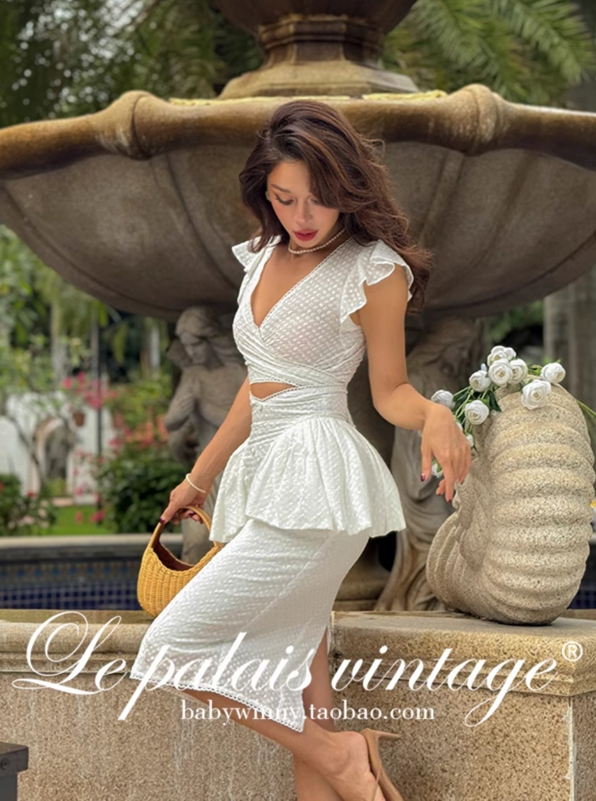 Le Palais Vintage embroidery cotton wrap short top + high-waisted bud skirt-TEE.