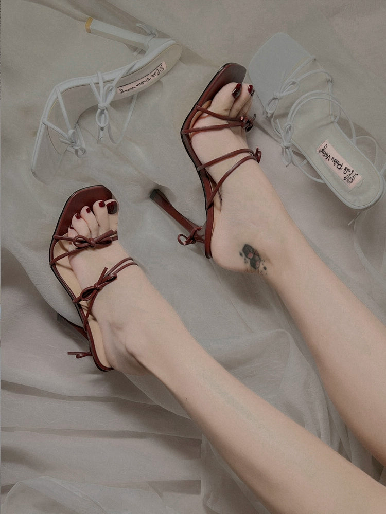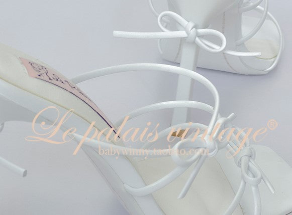 Le Palais Vintage French Retro Small Bow Thin Strap Heel Sandals-Nana.