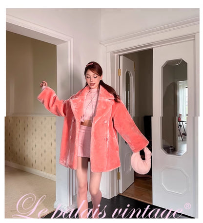 Le Palais Vintage grapefruit pink pure desire eco-friendly faux fur loose coat - Knie