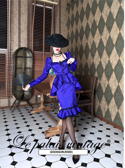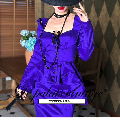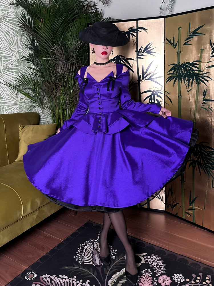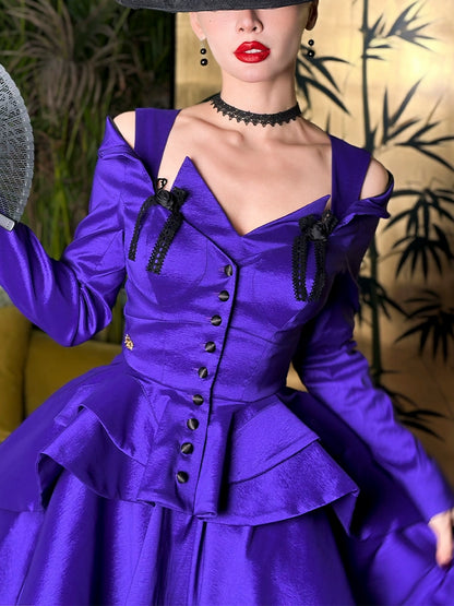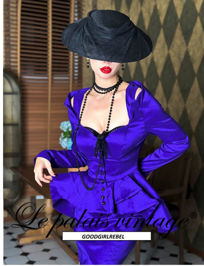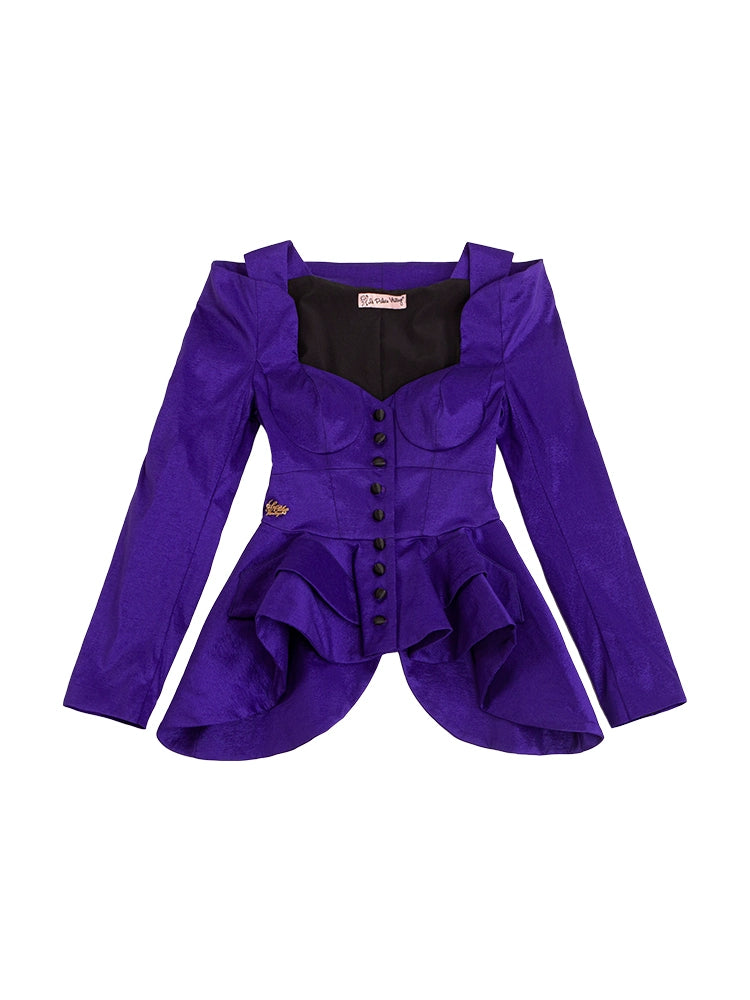 Le Palais Vintage heavy purple slim off-the-shoulder neck tuxedo jacket - pai
