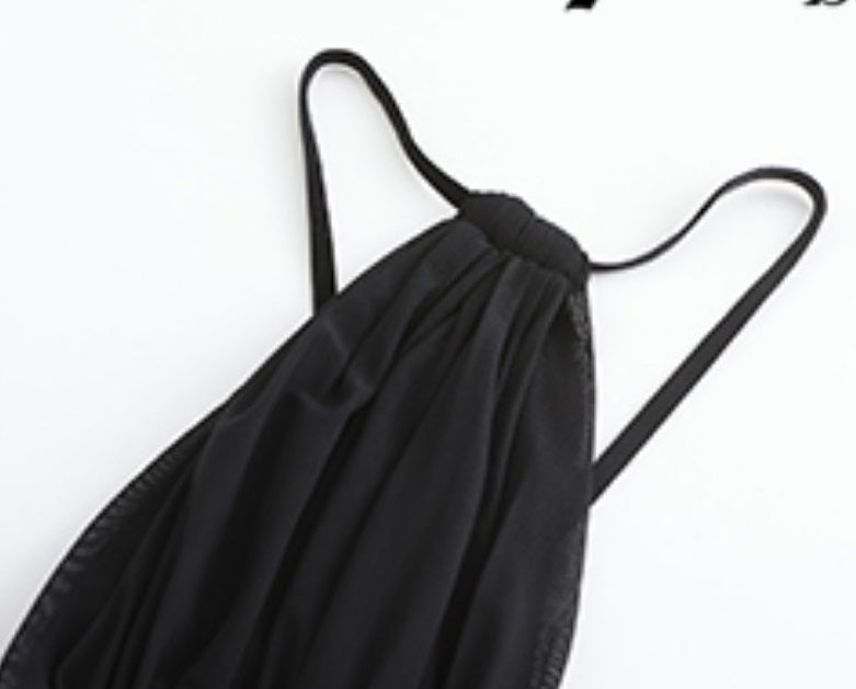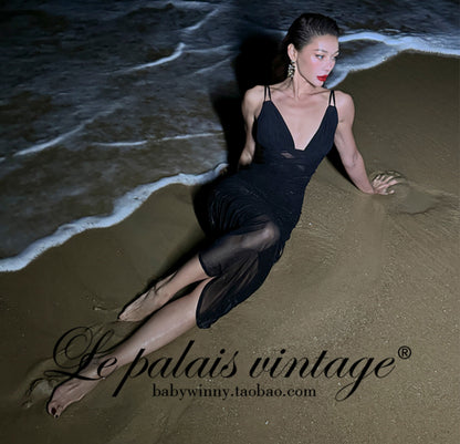Le Palais Vintage Black Halter Neck Body Wrap Sheer Mesh Dress - FIE.