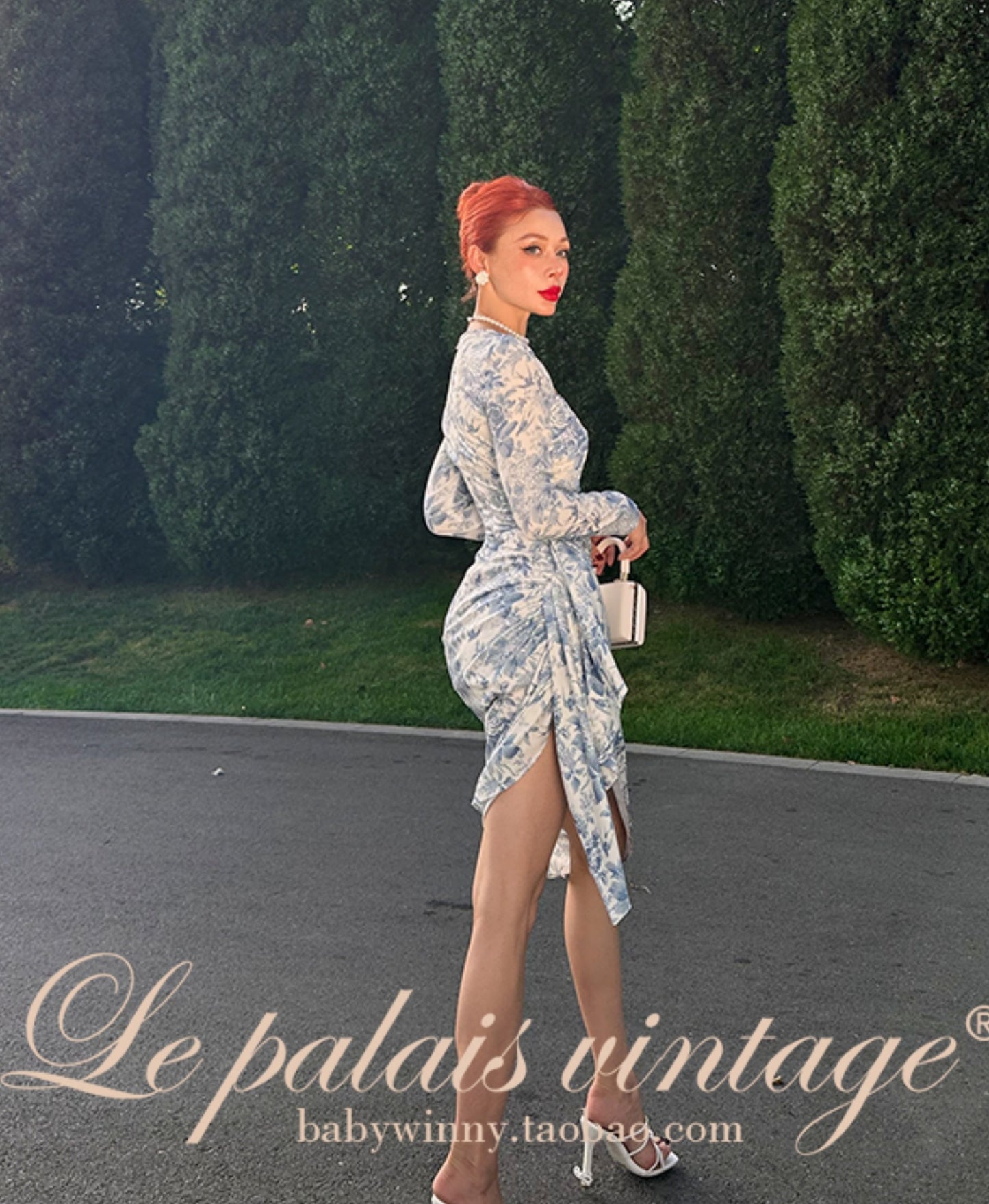 Discover elegance at its finest with the Le Palais Vintage High End Blue Long Sleeve Asymmetrical Pleated Midi Dinner Dress, featuring sophisticated pleating and a luxurious asymmetrical design. Perfect for any high-end occasion, this dress will make you stand out and exude an air of exclusivity. Elevate your style with Le Palais Vintage.