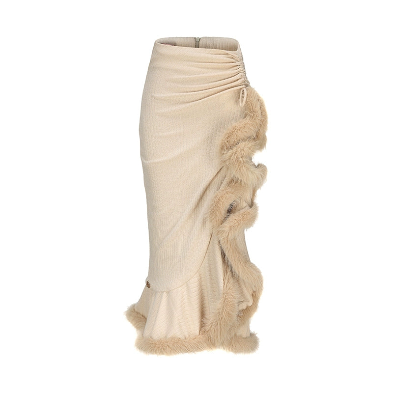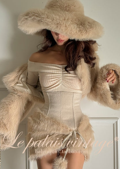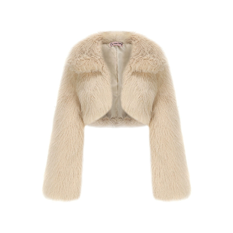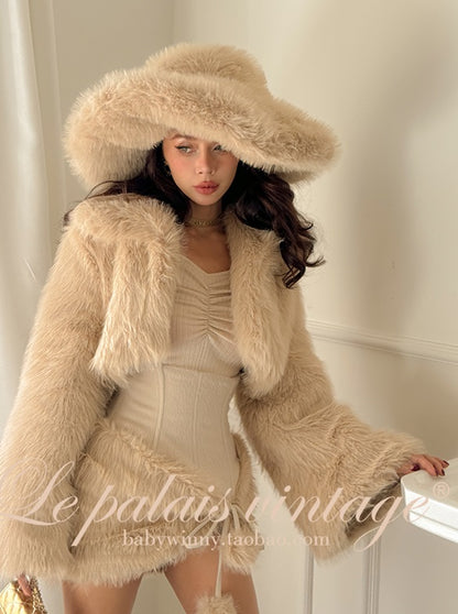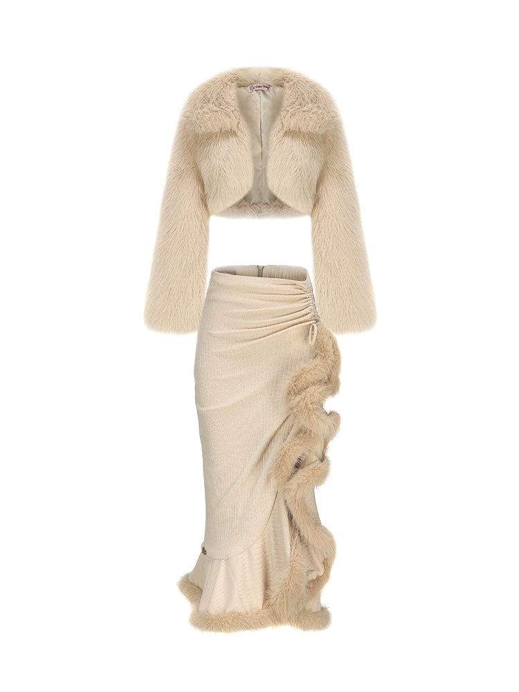 Le Palais Vintage High End V-Neck Long Sleeve Crop Jacket, Long Slit Fur Skirt-NANA.