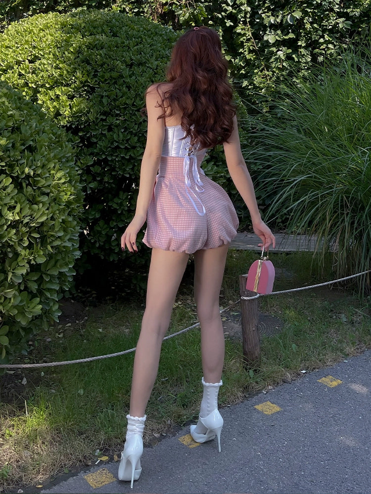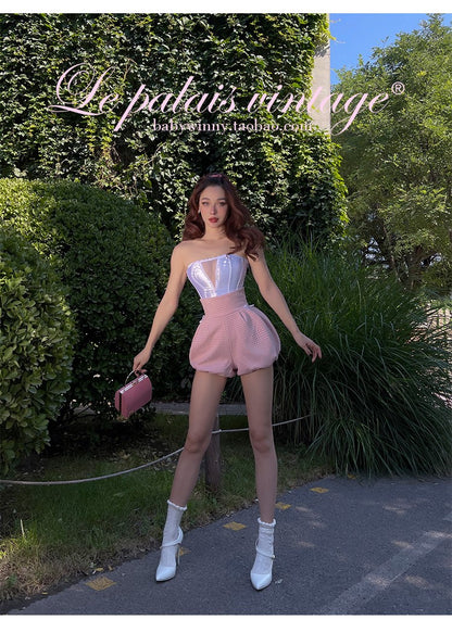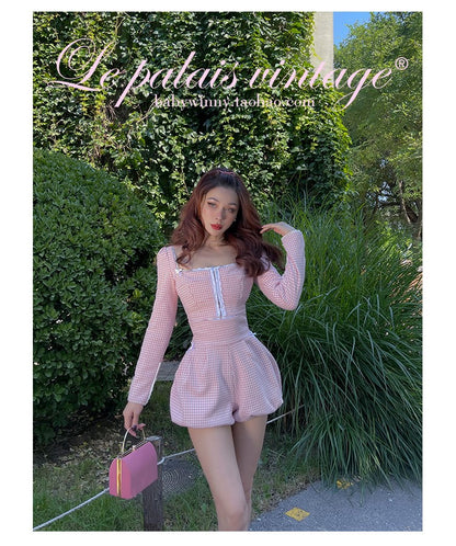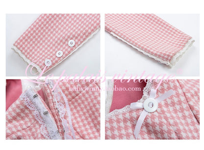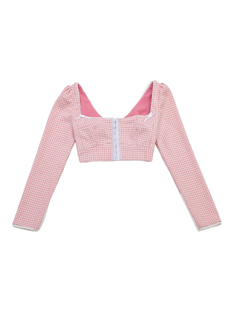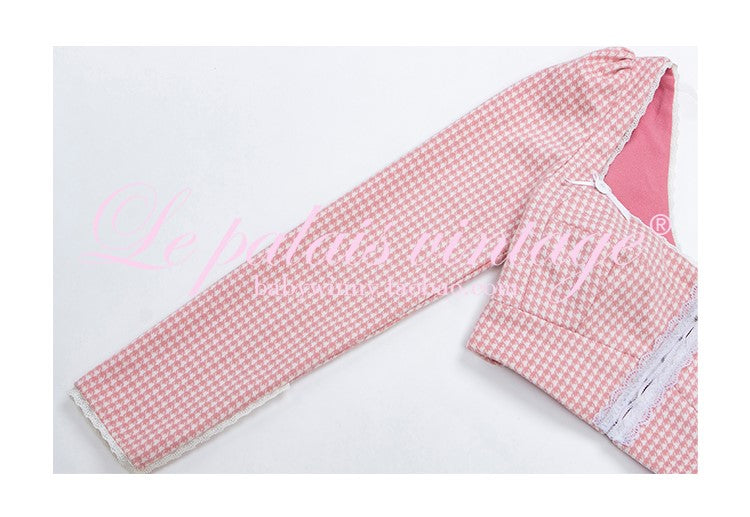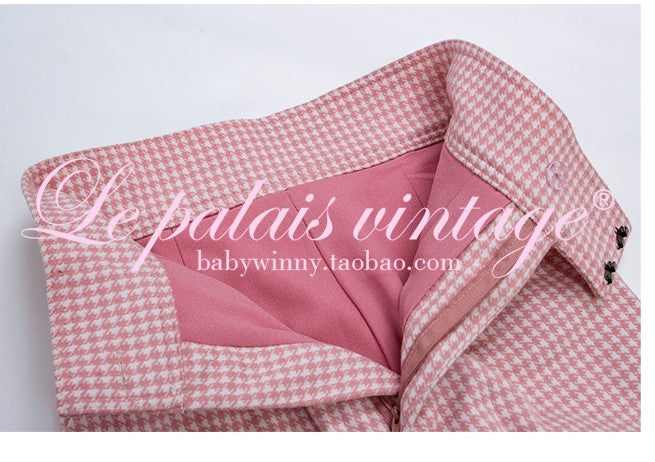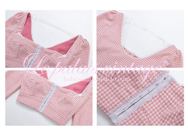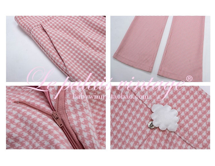 Le Palais Vintage Pink Tweed Long Sleeves High Waist top Pants-Lara