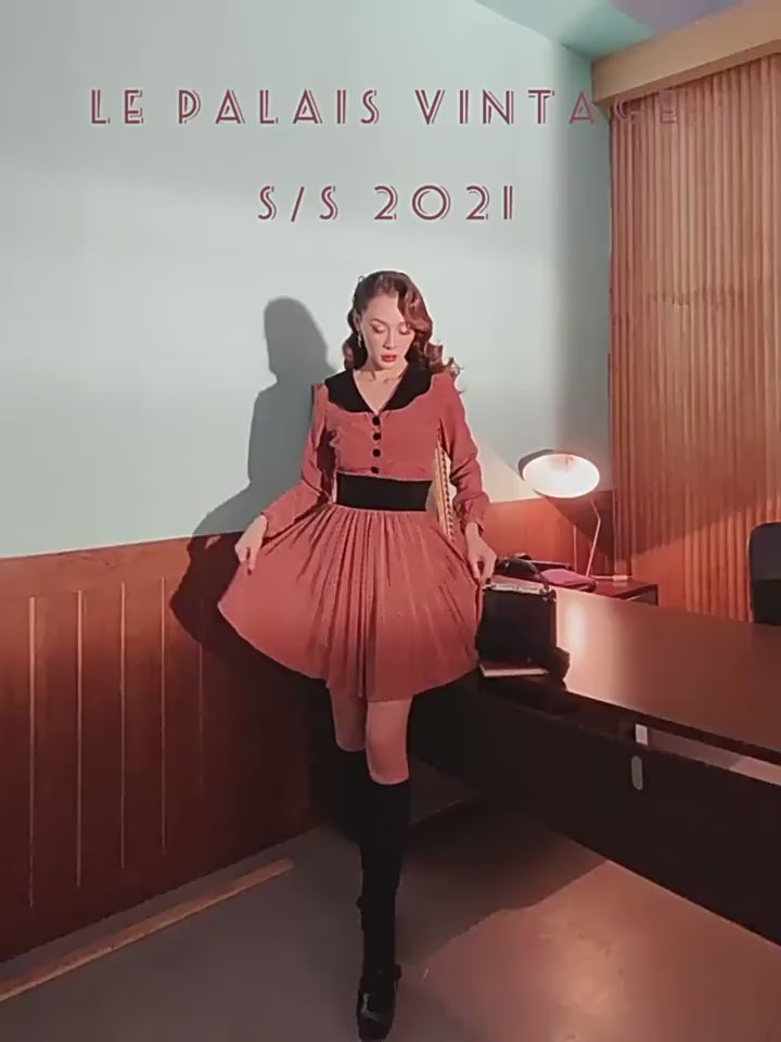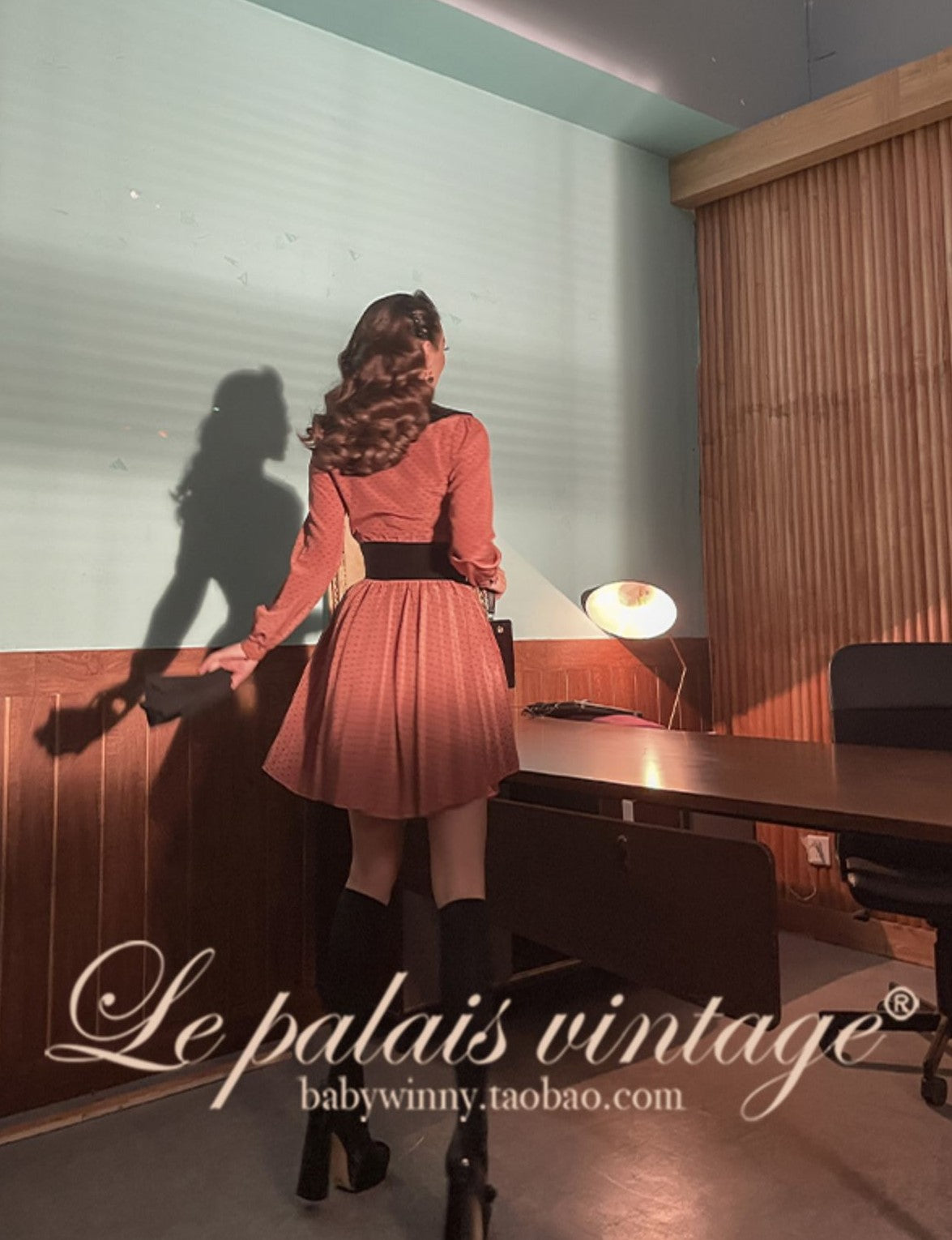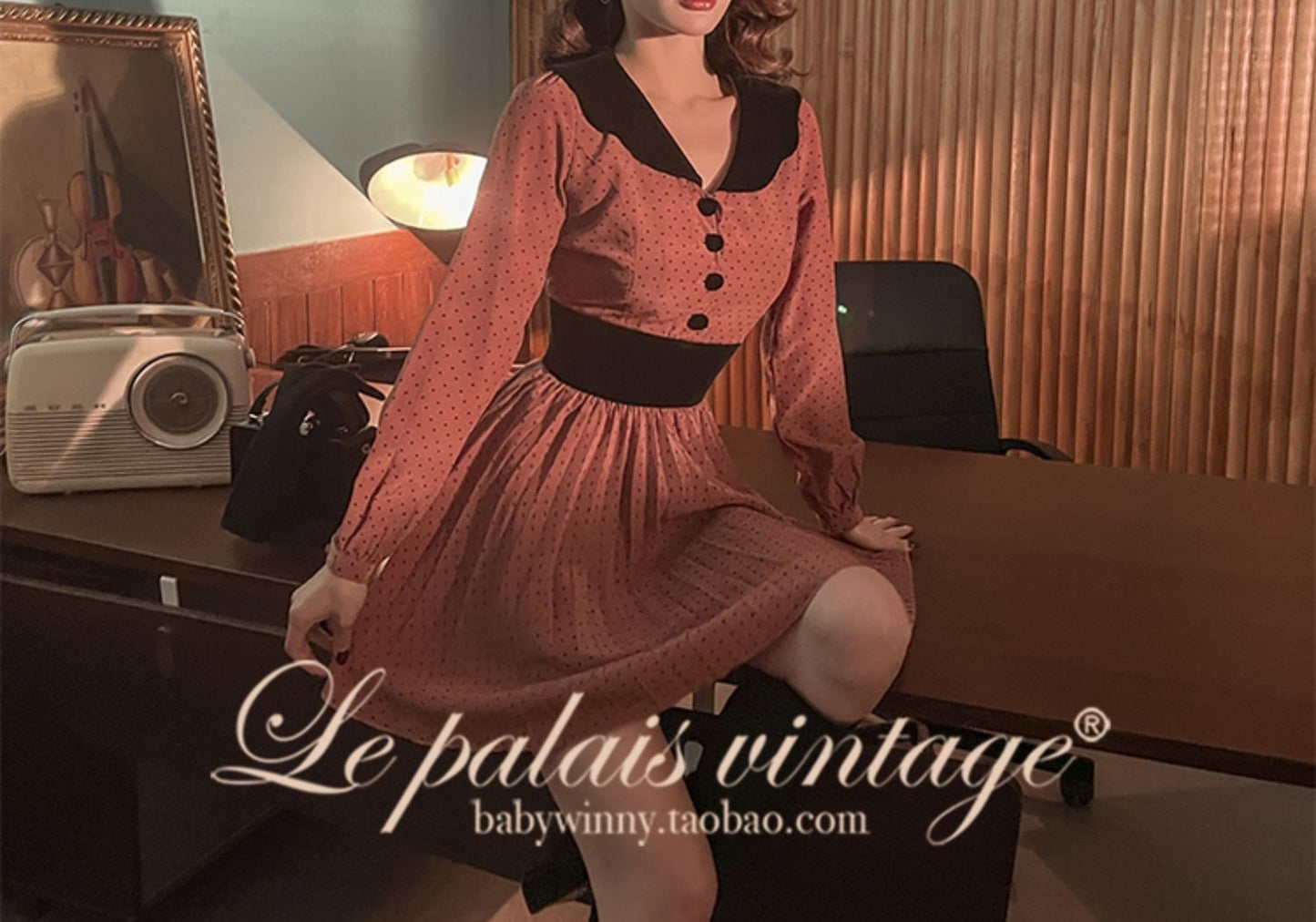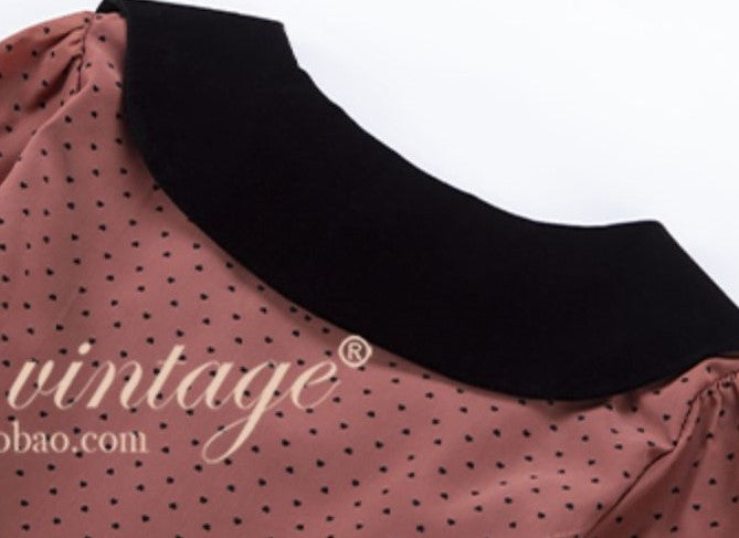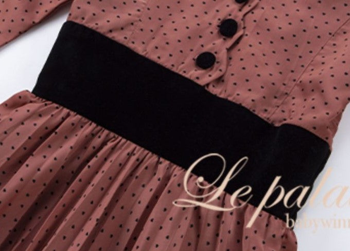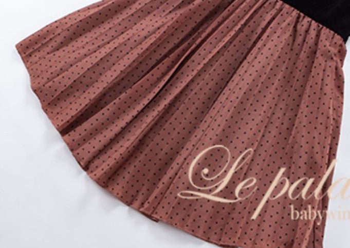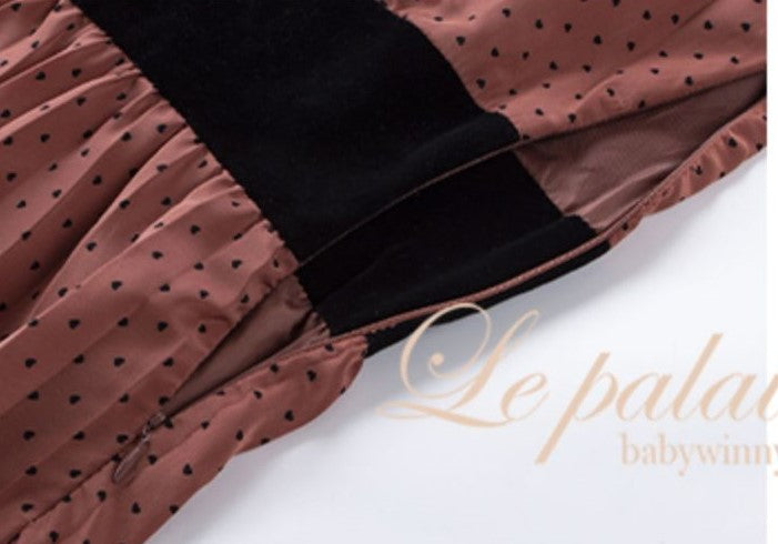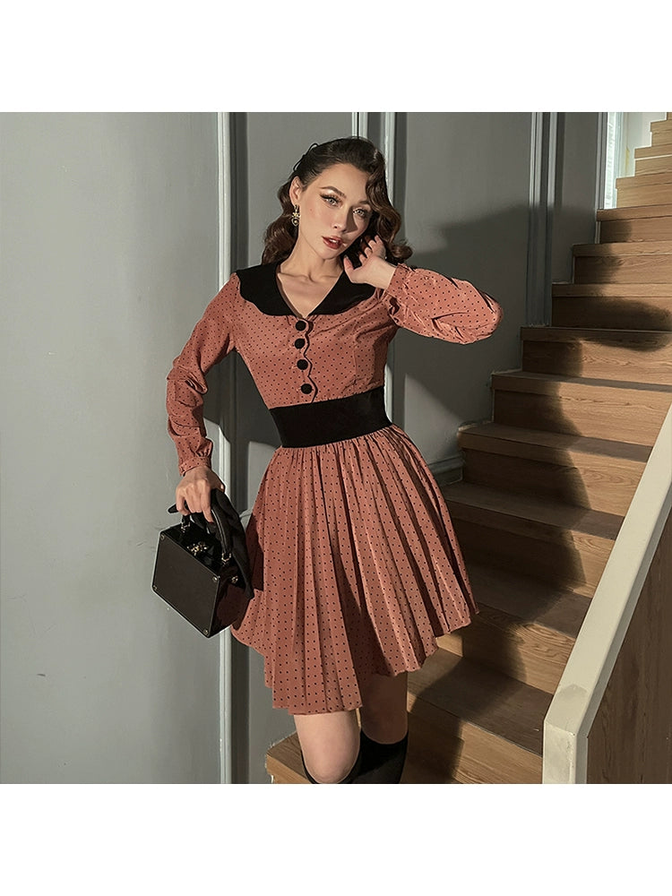 Le Palais Vintage Luxury Caramel Polka Dot Waist Pleated Dinner Dress-June.