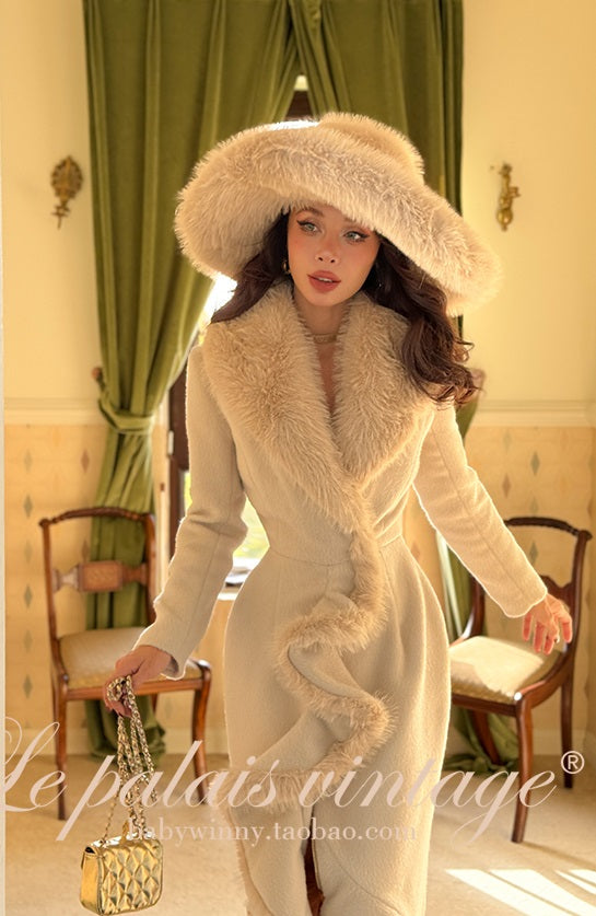 Le Palais Vintage Luxury Long Sleeve Slim Fit Long Plush Fur Winter Coat-MiUA.