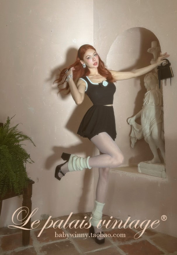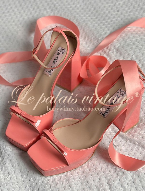Le Palais Vintage Luxury Pink and Black Block Heel Sandals-Mary Jane