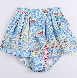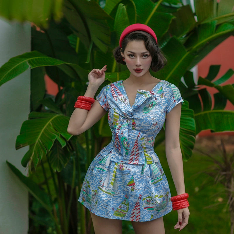 Le Palais Vintage Luxury Short Sleeve Pattern Waist Top + High Waist Culottes-Sue