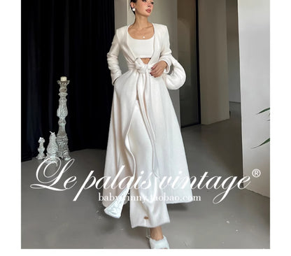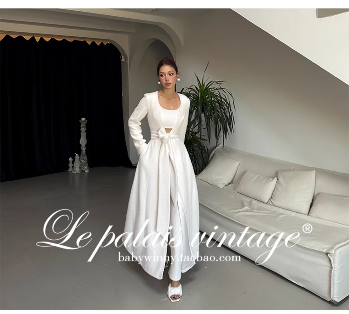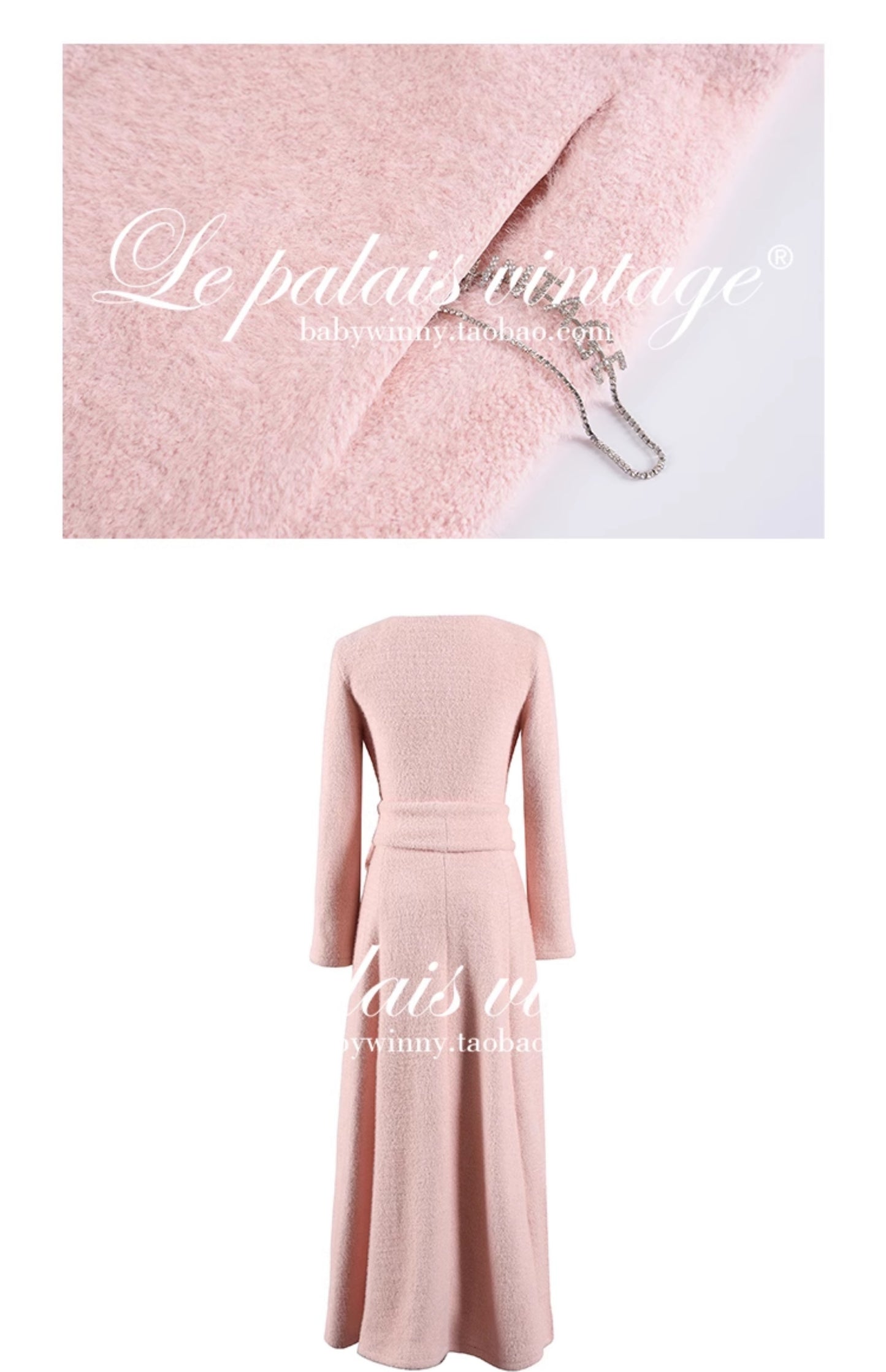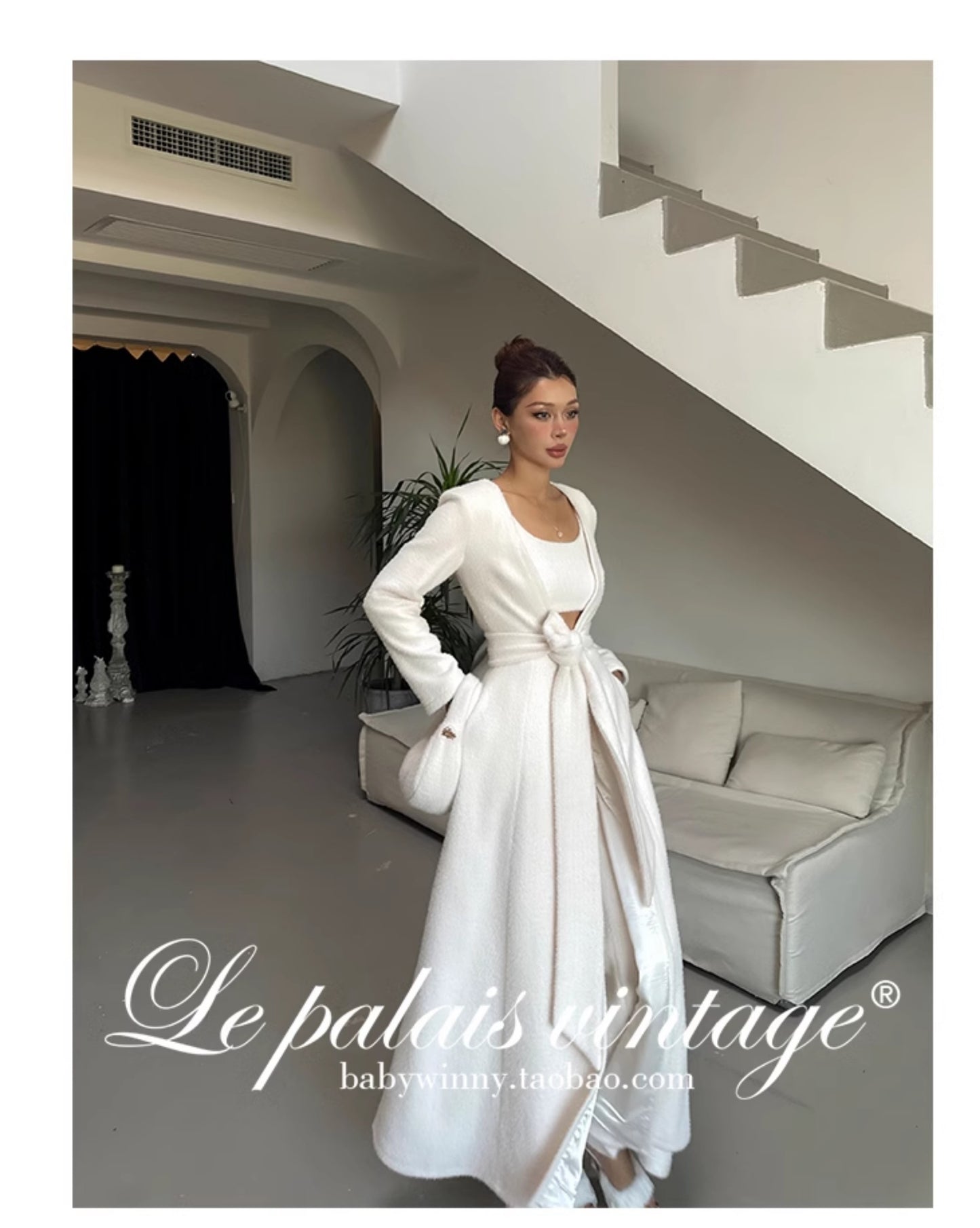 Le Palais Vintage Luxury Soft Slim Plush Drape Wrap Long White and Pink Coat-Hazai