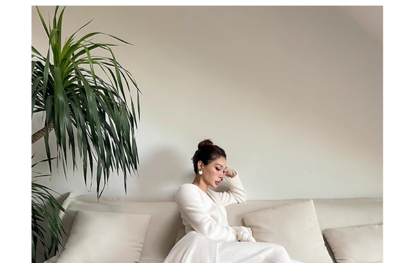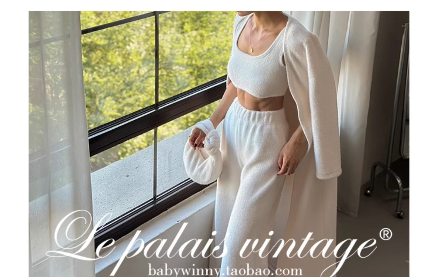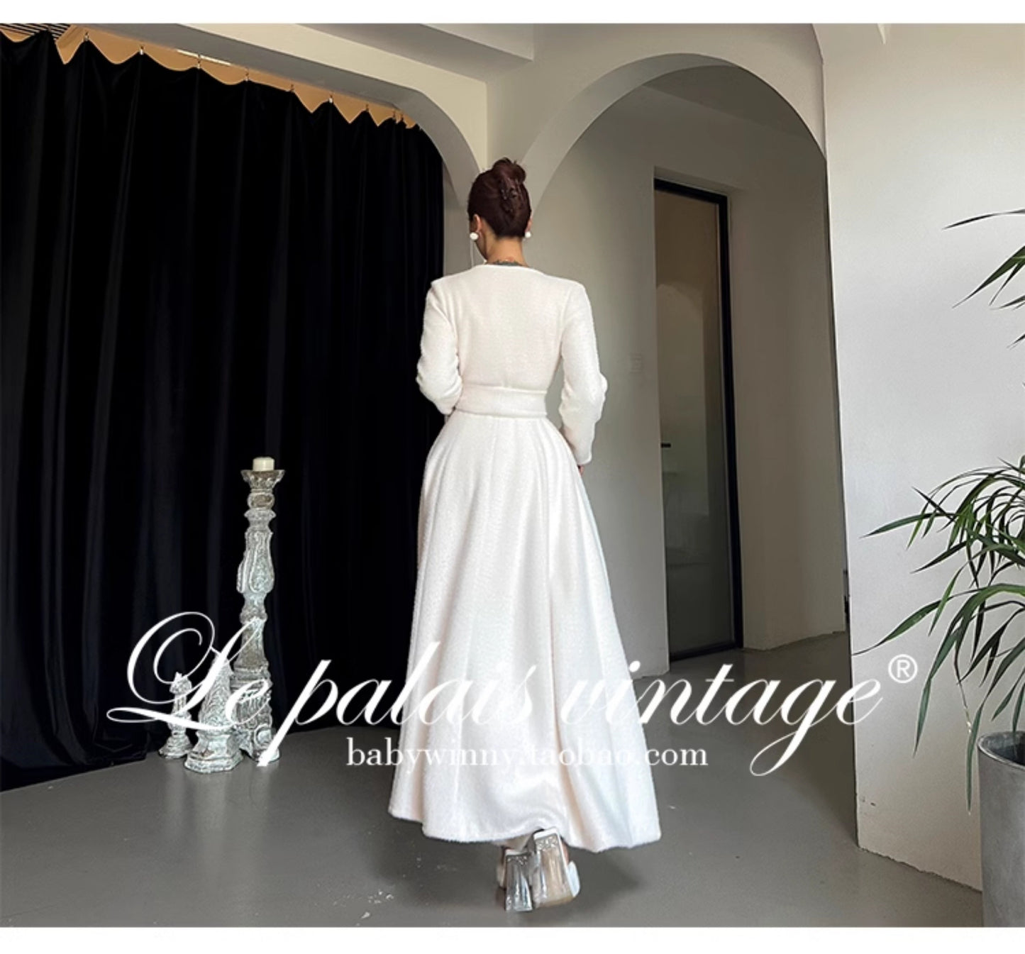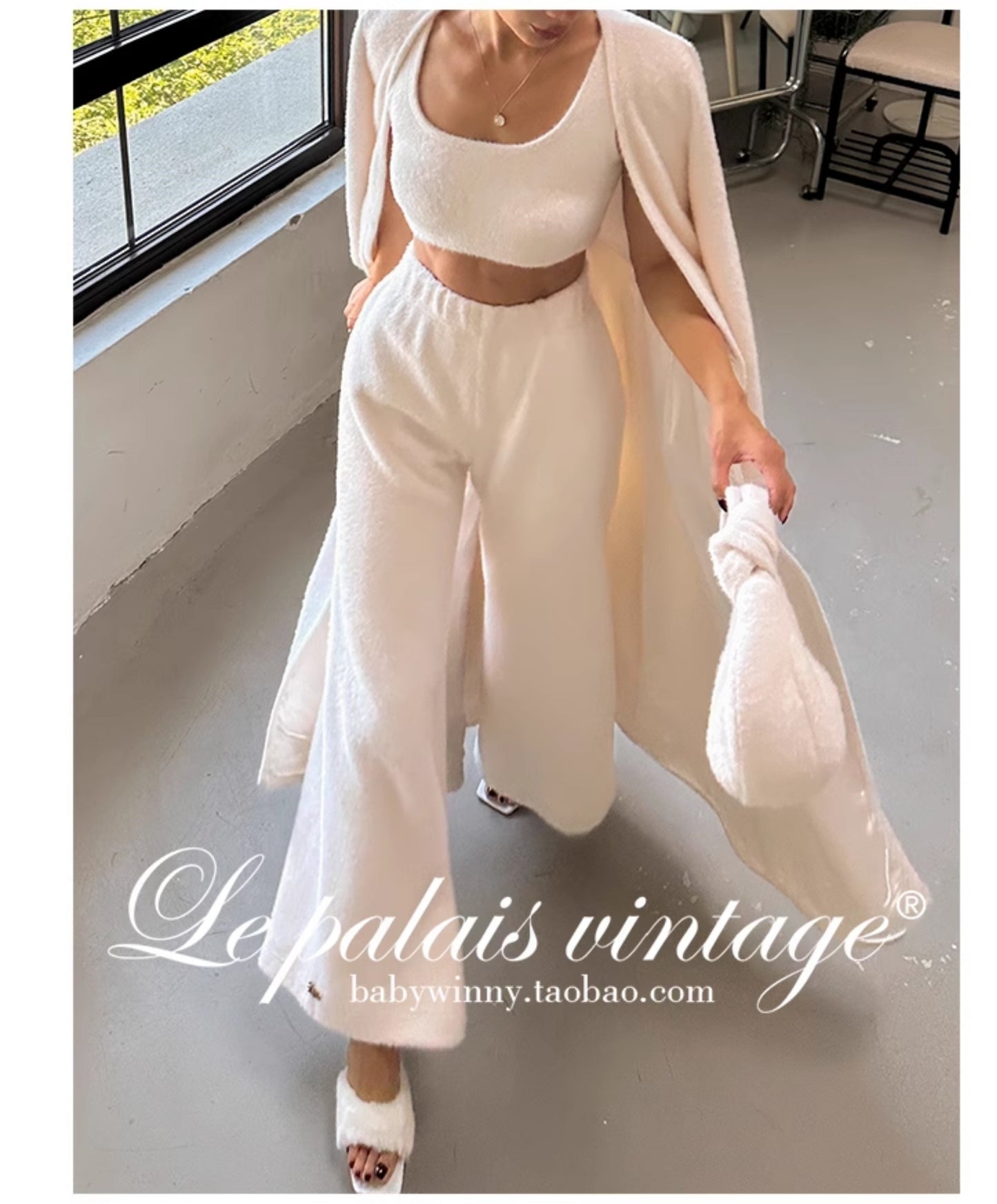 Le Palais Vintage Luxury Soft Slim Plush Drape Wrap Long White and Pink Coat-Hazai