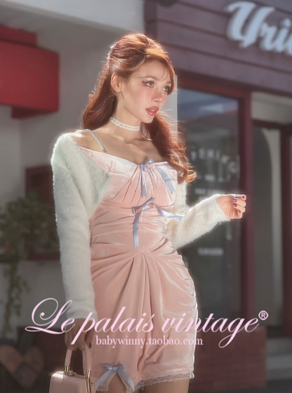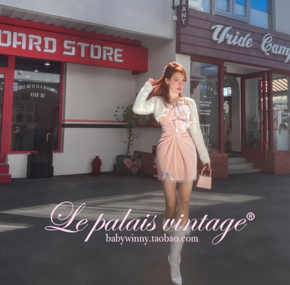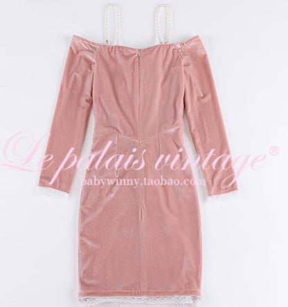 Le Palais Vintage Original Autumn Retro Pink Velvet Strapless Midi Cocktail Dress-Vera