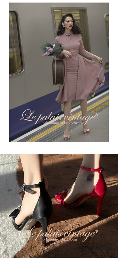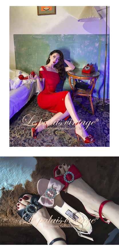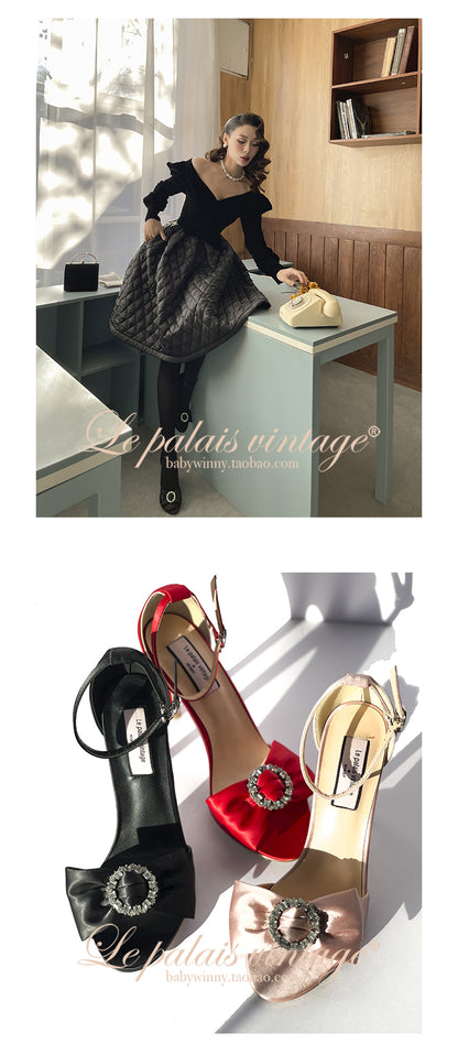 Le palais vintage original silk-satin bows and sparkling diamond heels - Minti