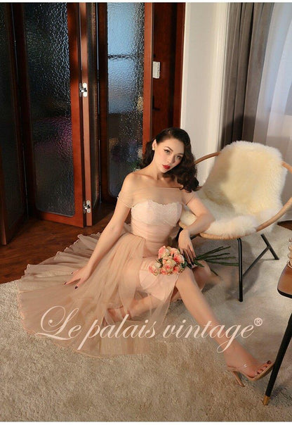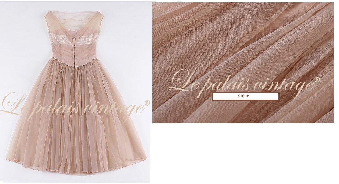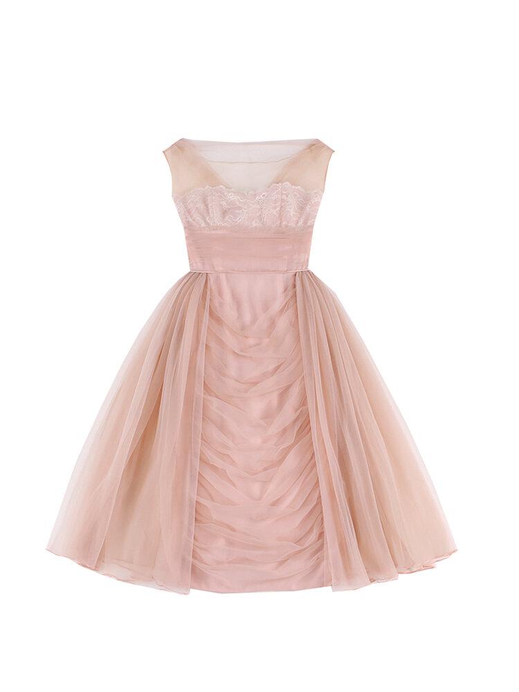 Le Palais vintage original peach elegant retro lace pleated vintage dress- Kion