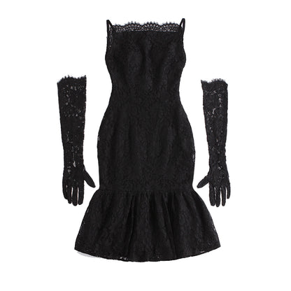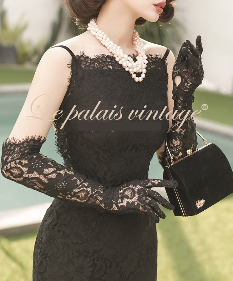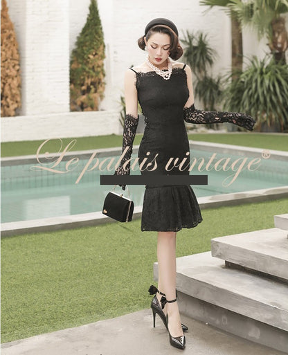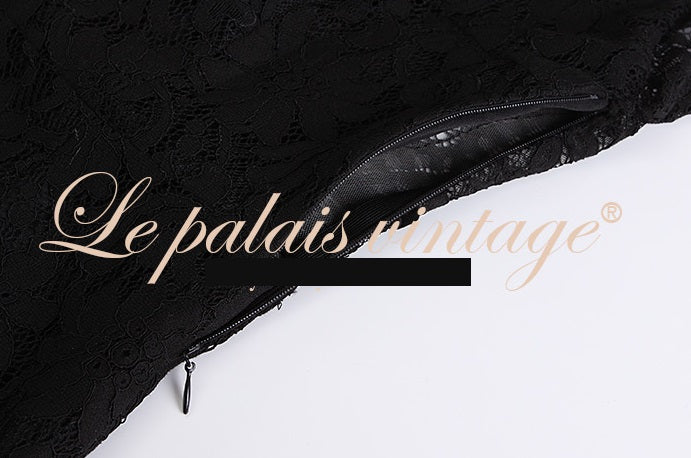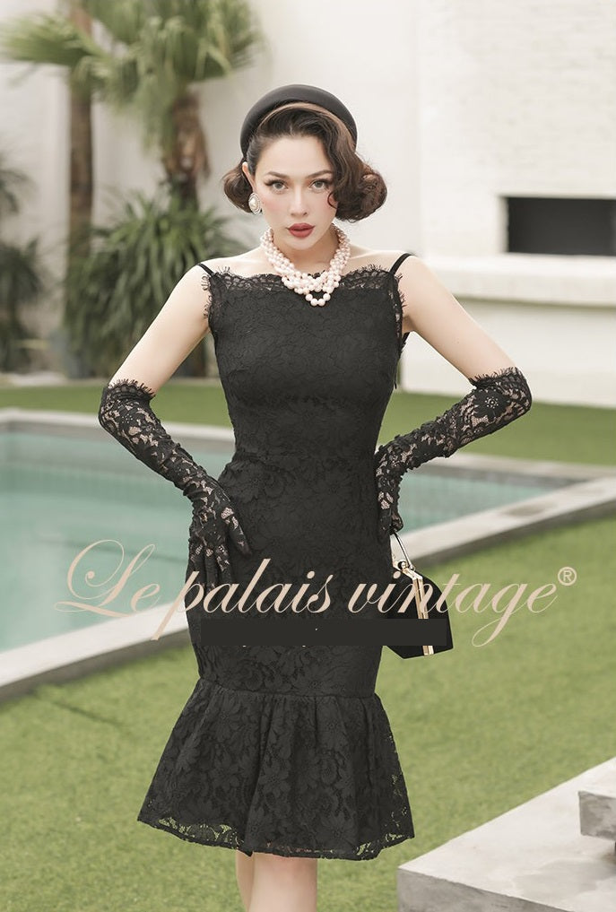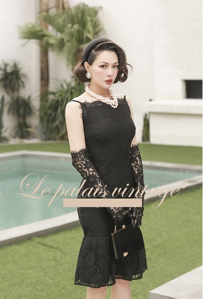 le palais vintage original retro elegant slim thin black lace backless fishtail dress