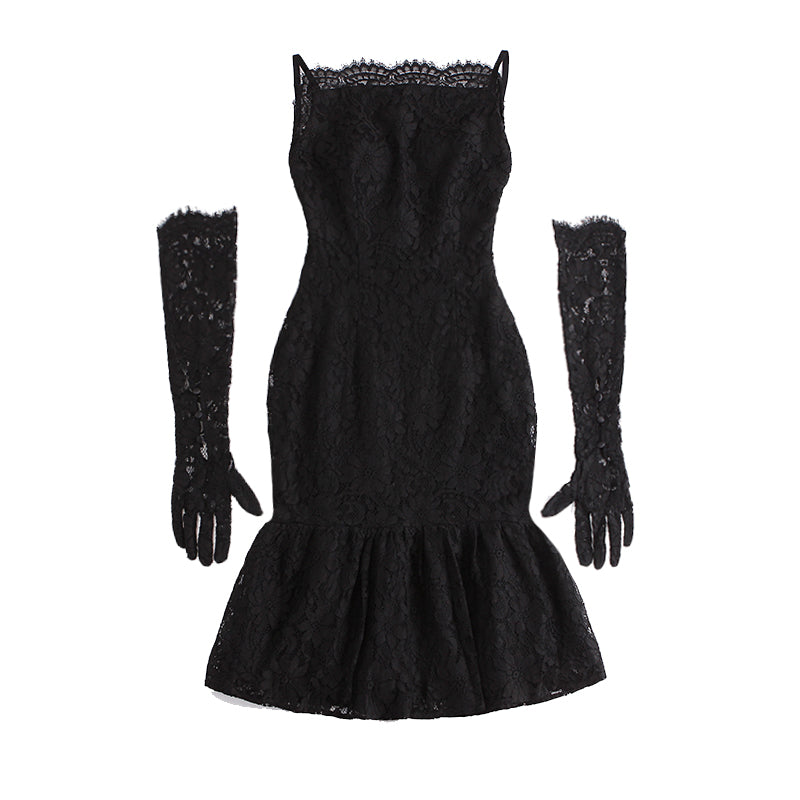 The le palais vintage Original Retro Elegant Slim Thin Black Lace Backless Fishtail Dress adds a touch of luxury to any wardrobe. Crafted from delicate lace in a fall-inspired color palette, this stunning dress features a slim silhouette and an unexpected fishtail hem that adds an alluring air of glamour and femininity. Chic and sexy, this dress is the perfect way to make a statement.