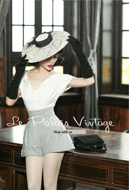 Le Palais Vintage retro pin up Limited elegant classic tall waist woolen shorts