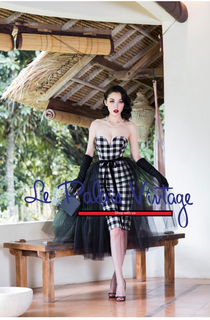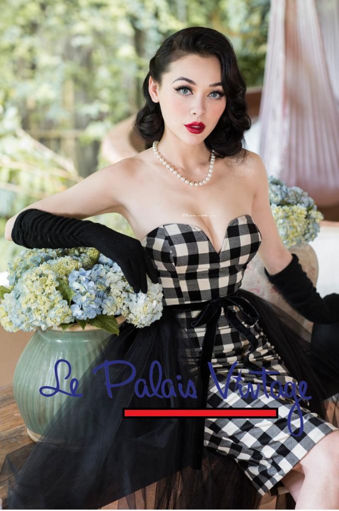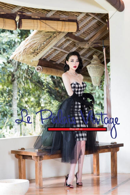 Le palais vintage retro pinup strapless velveteen checkered pencil dress and tutu set