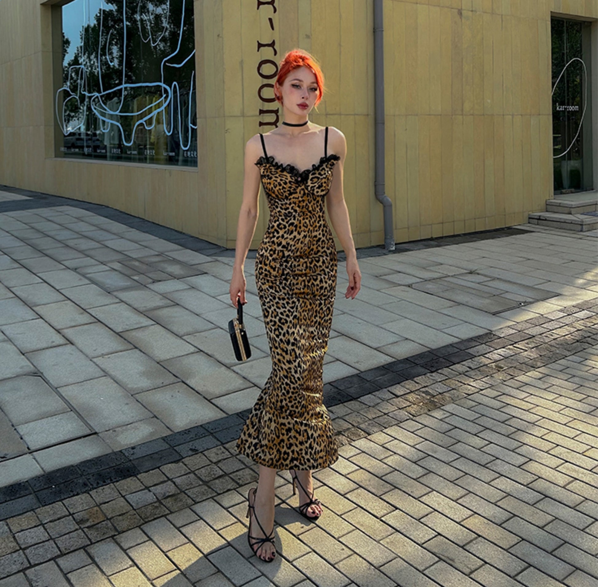 Le Palais Vintage sensual elegant leopard print faux silk satin slim wrap maxi dress-ASTA