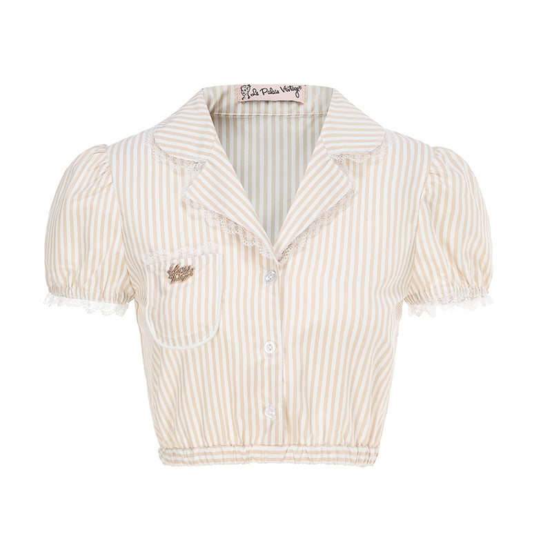 Indulge in a sophisticated and chic look with Le Palais Vintage's 'Sweet and Spicy' shirt and shorts set. The high waist pumpkin shorts and short puff sleeves of the shirt give off a classy vibe, perfect for any formal or casual occasion. Elevate your style with this timeless ensemble.