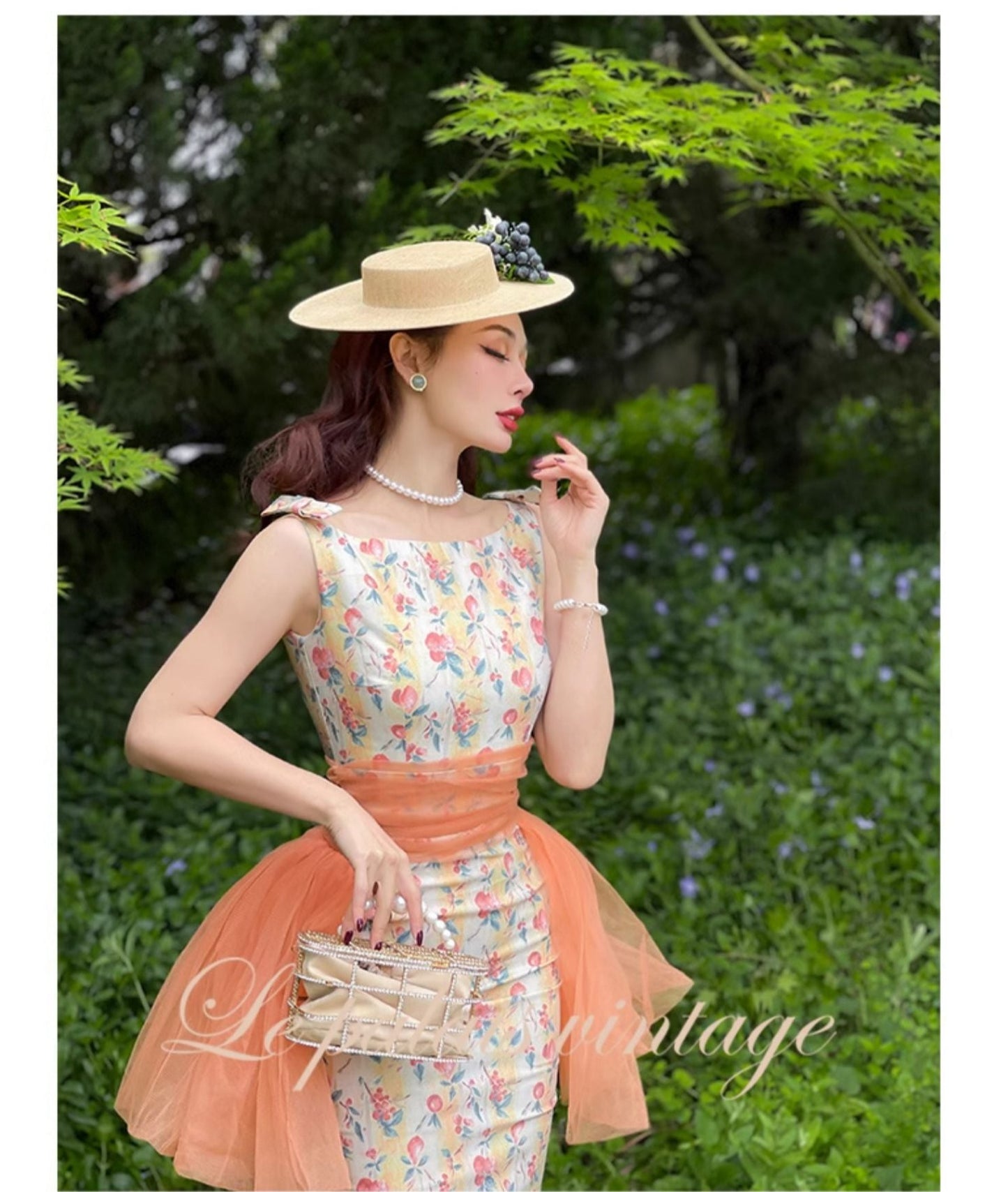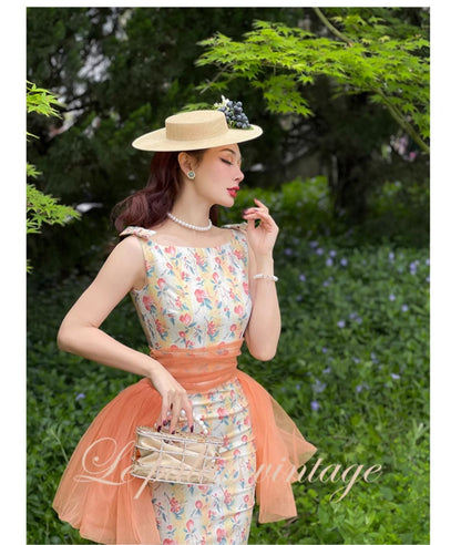 Le palais vintage vintage 50s elegant floral waist seal Hepburn dress - Charlotte