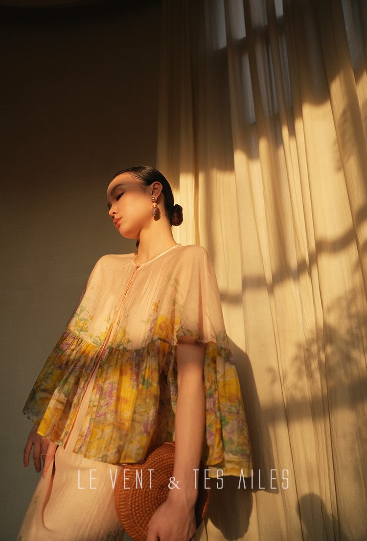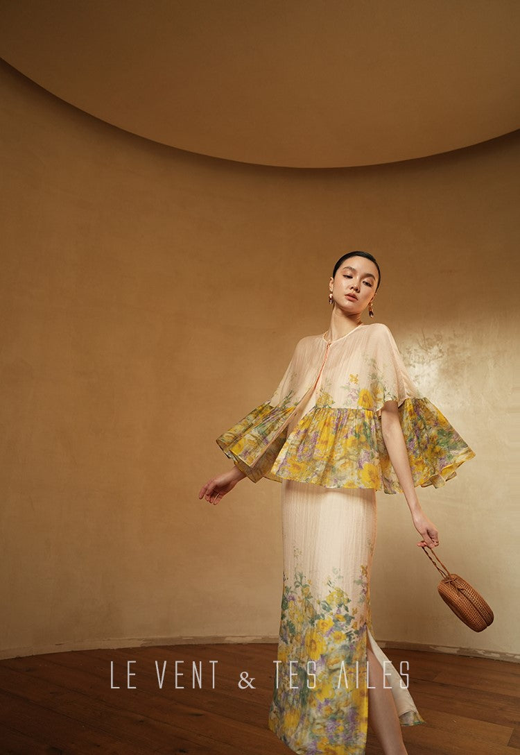LE VENT&TES AILES Artistic 100% Silk floral Printed Dress - NINA