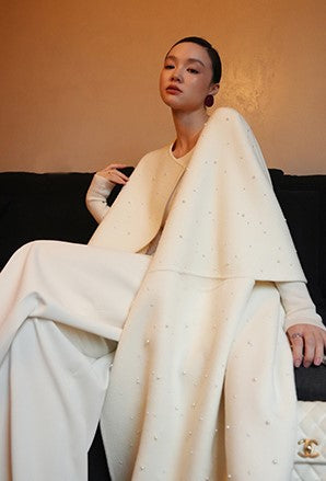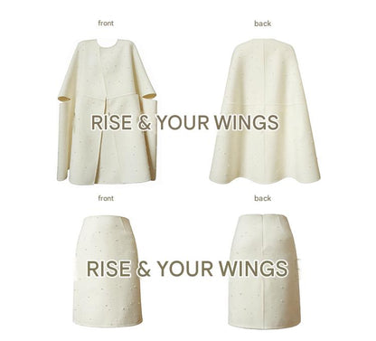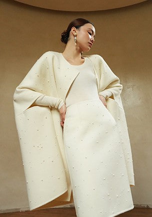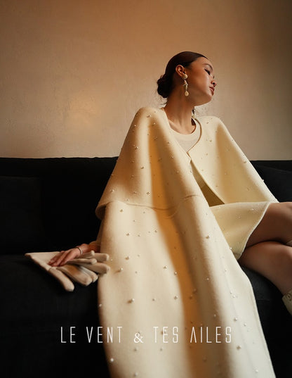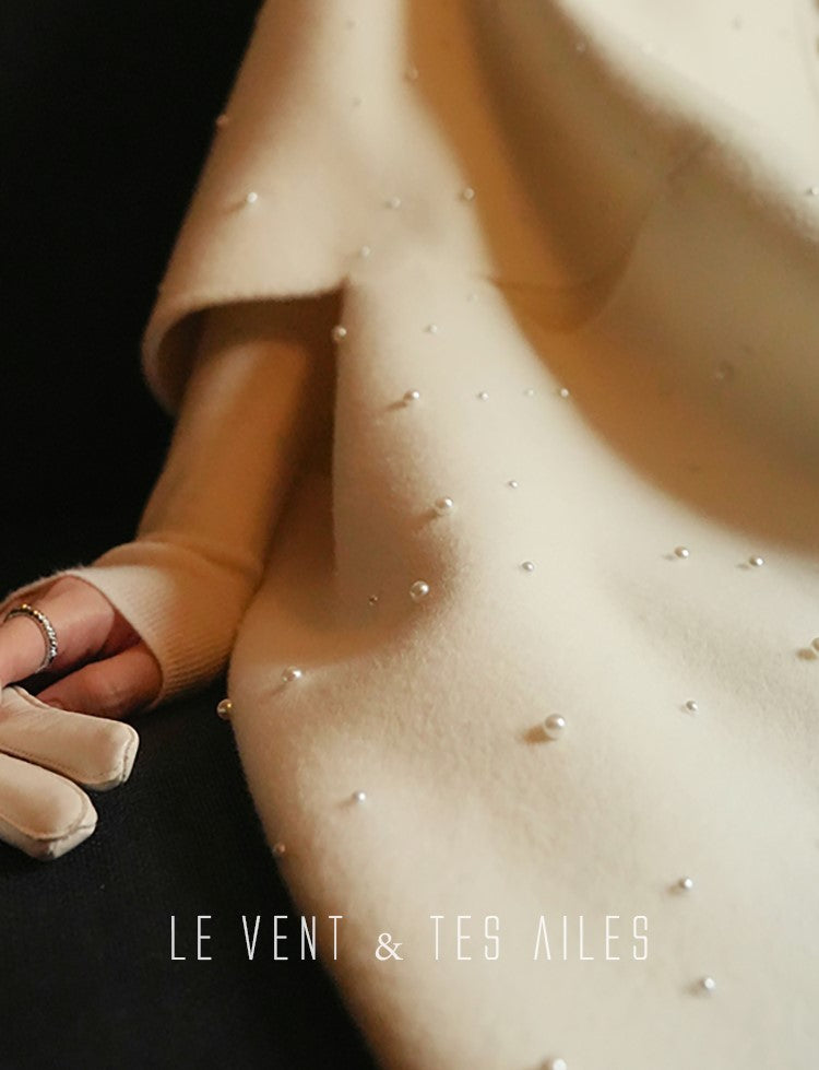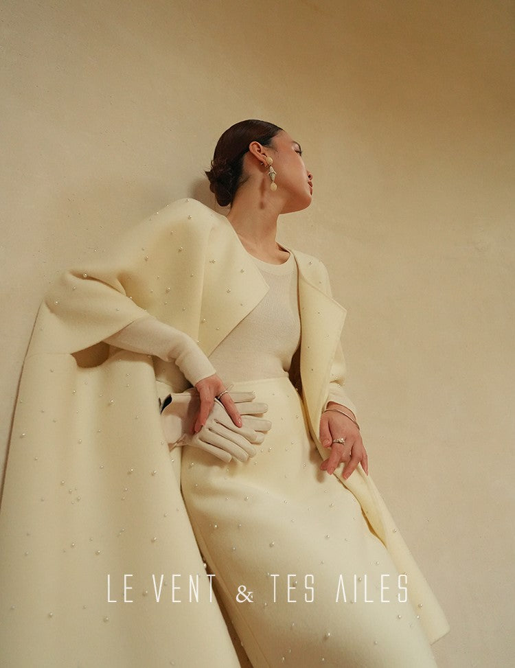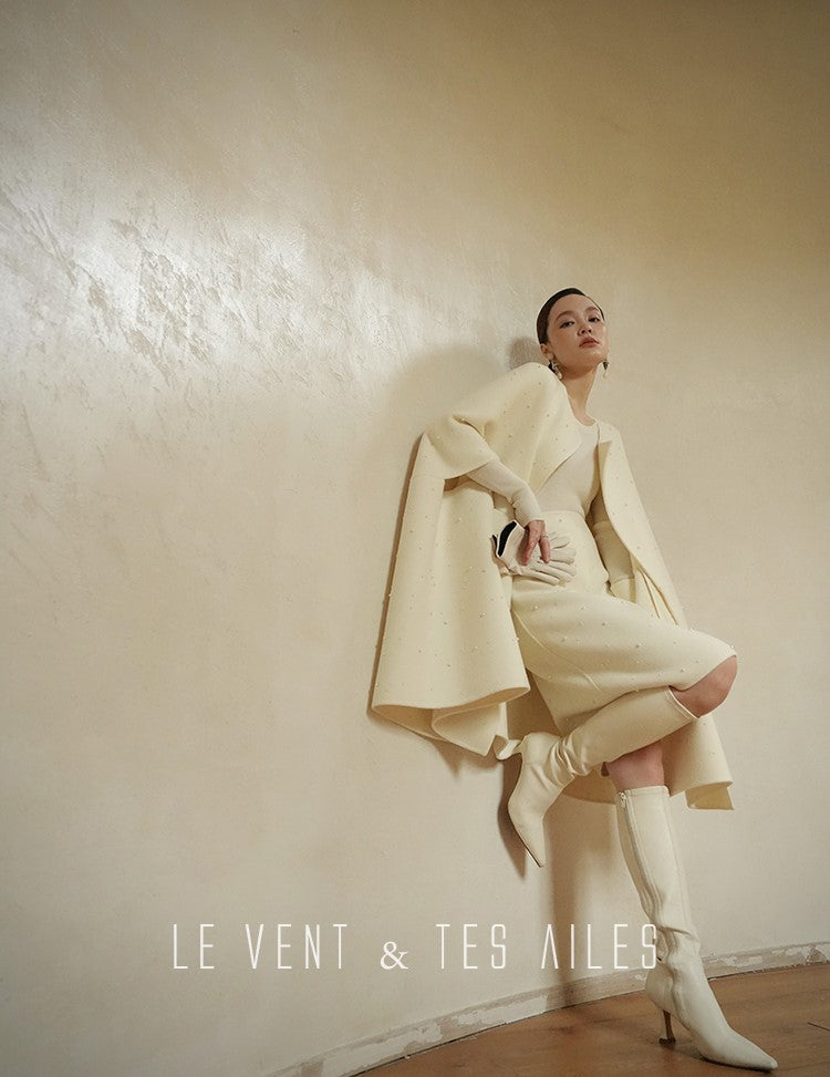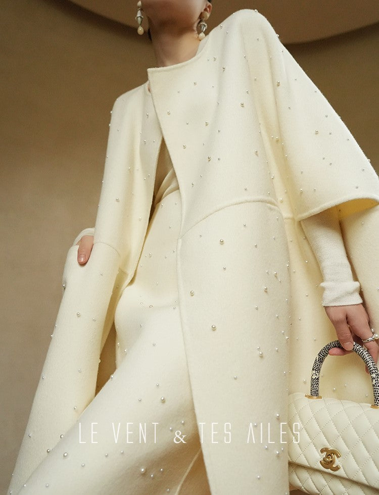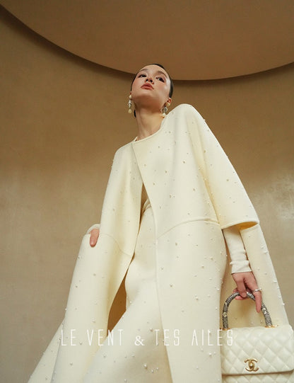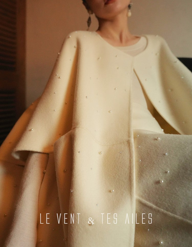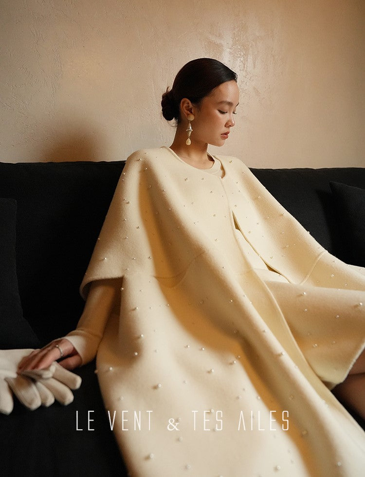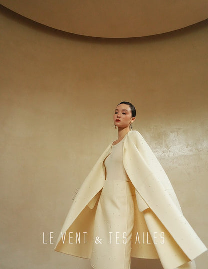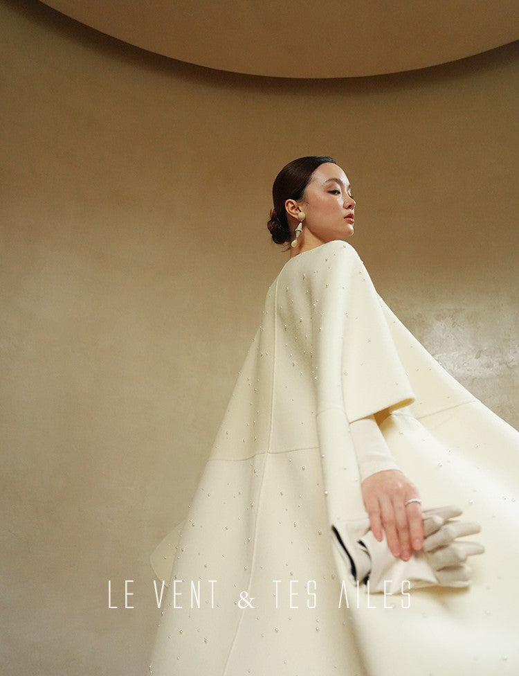 LE VENT&TES AILES French cream luxury beaded wool tweed coat cape-LEAH