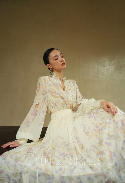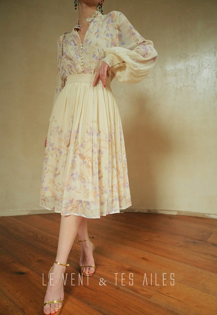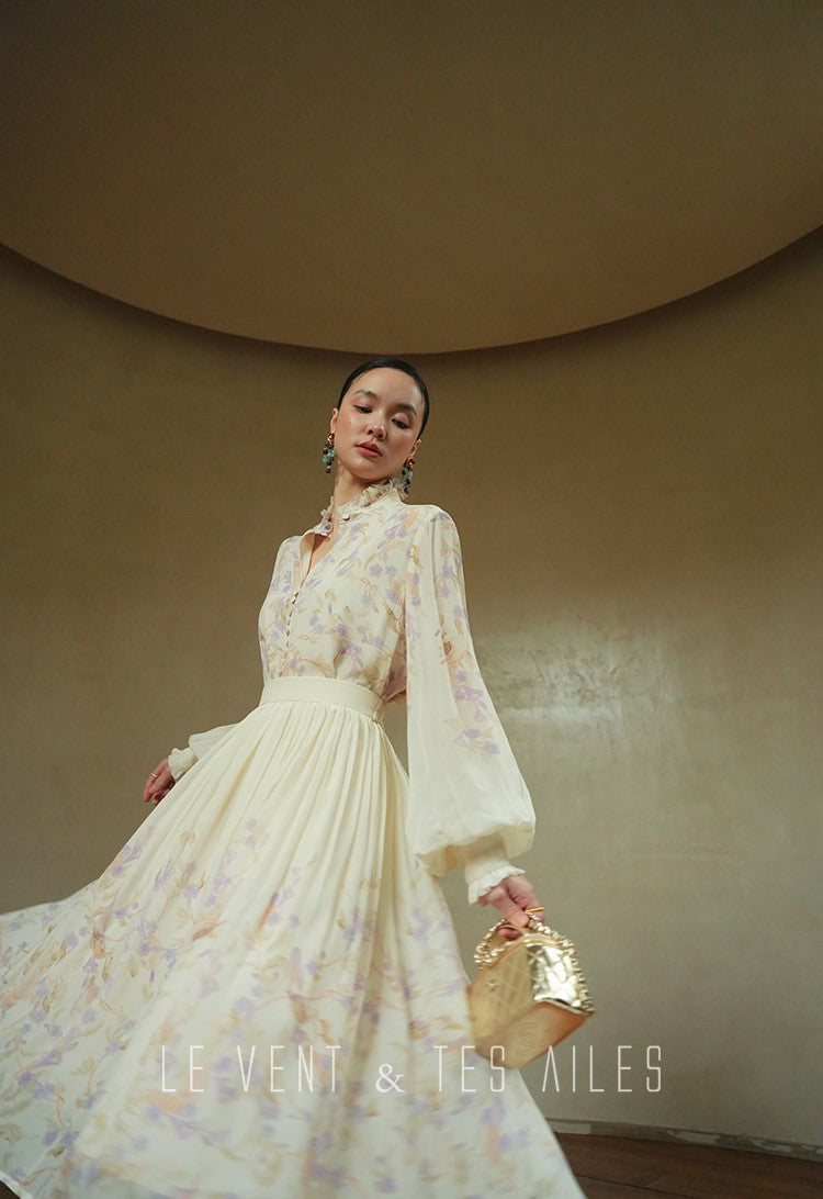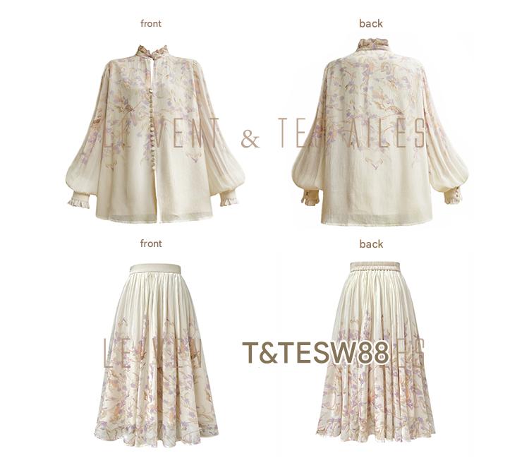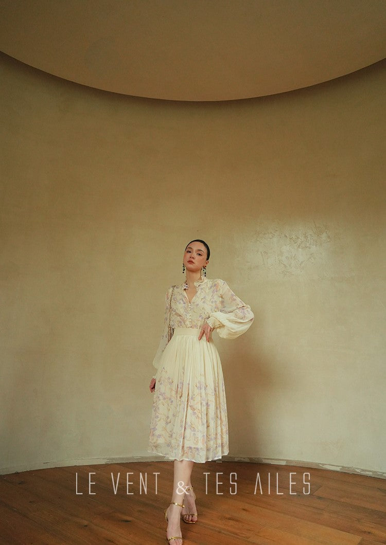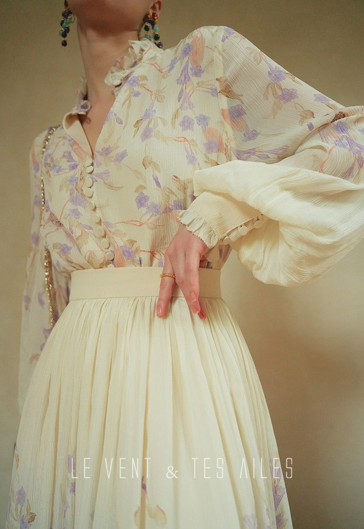 LE VENT&TES AILES French summer vacation floral Full Lady elegant top skirt set -AVA