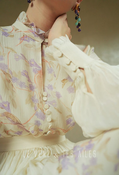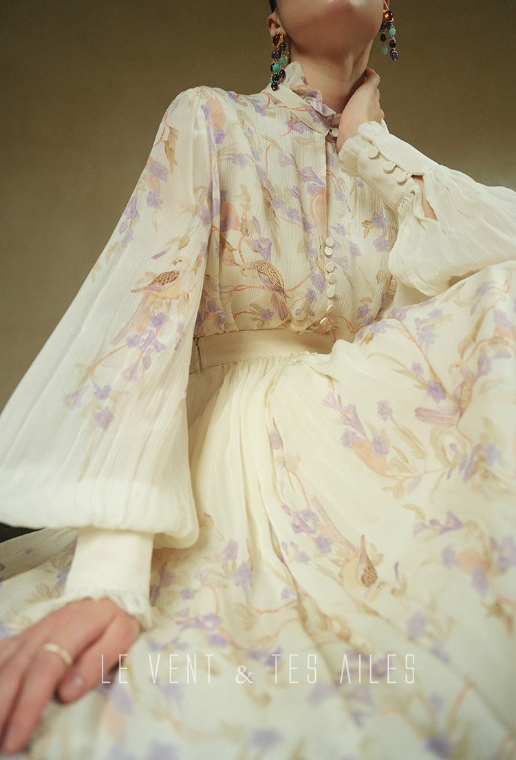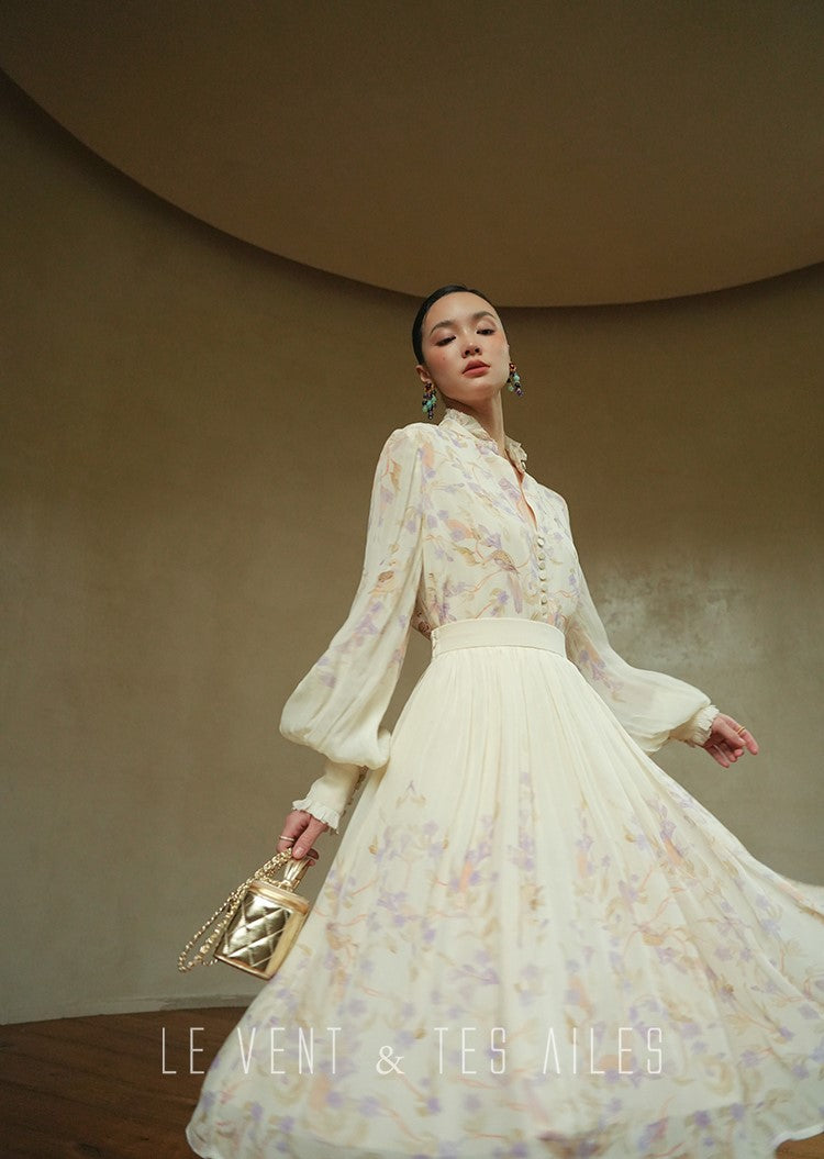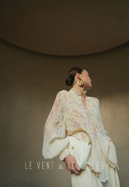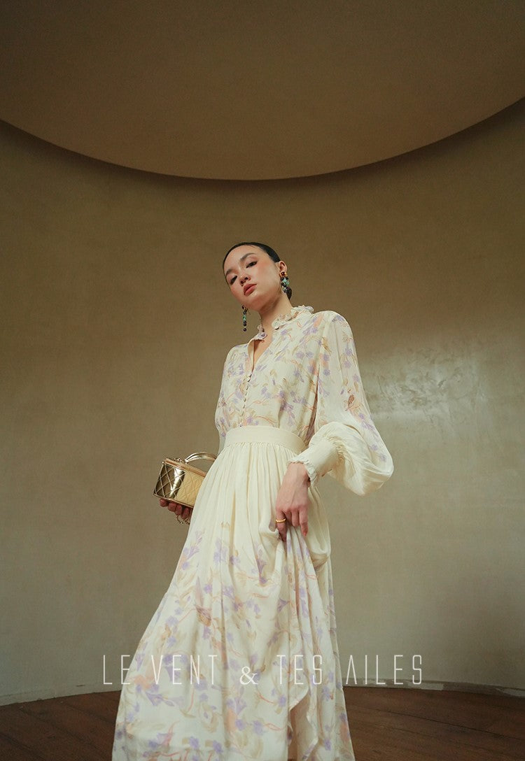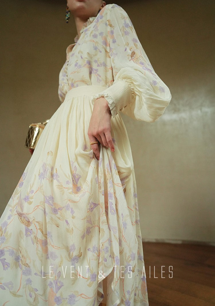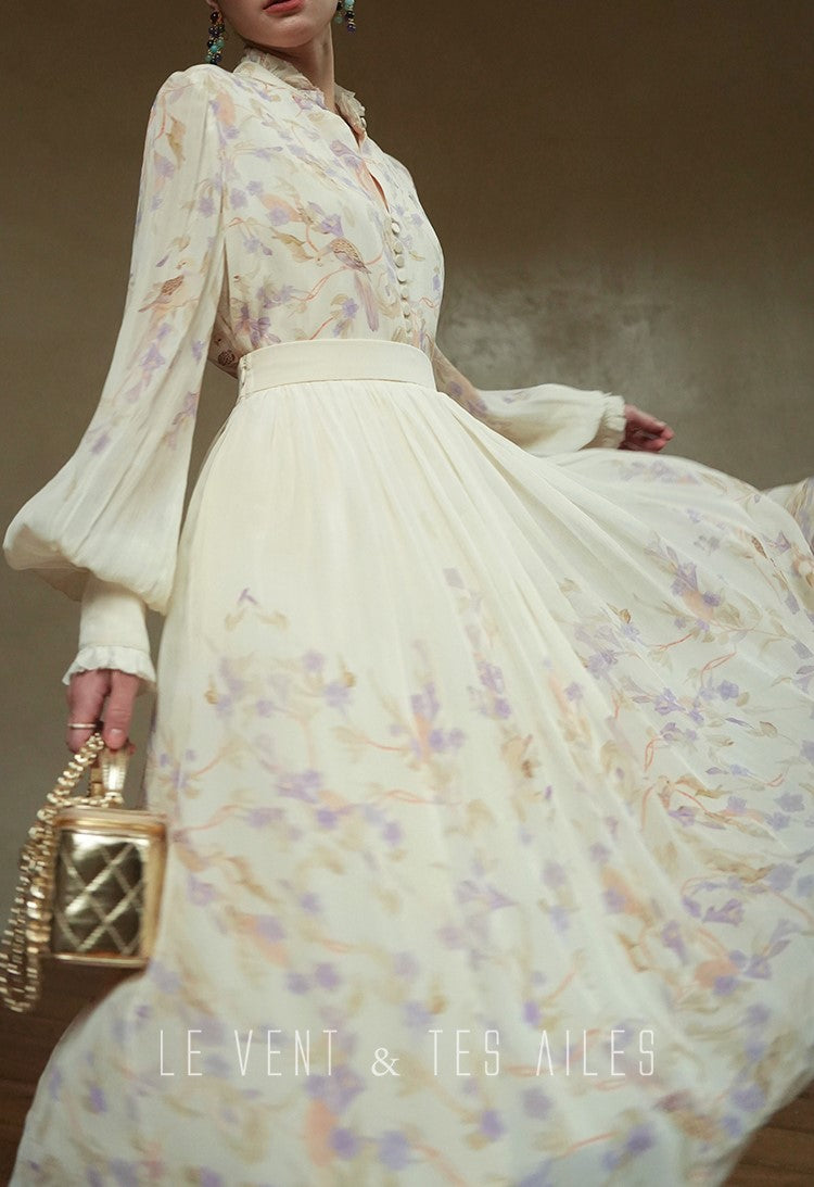 LE VENT&TES AILES French summer vacation floral Full Lady elegant top skirt set -AVA