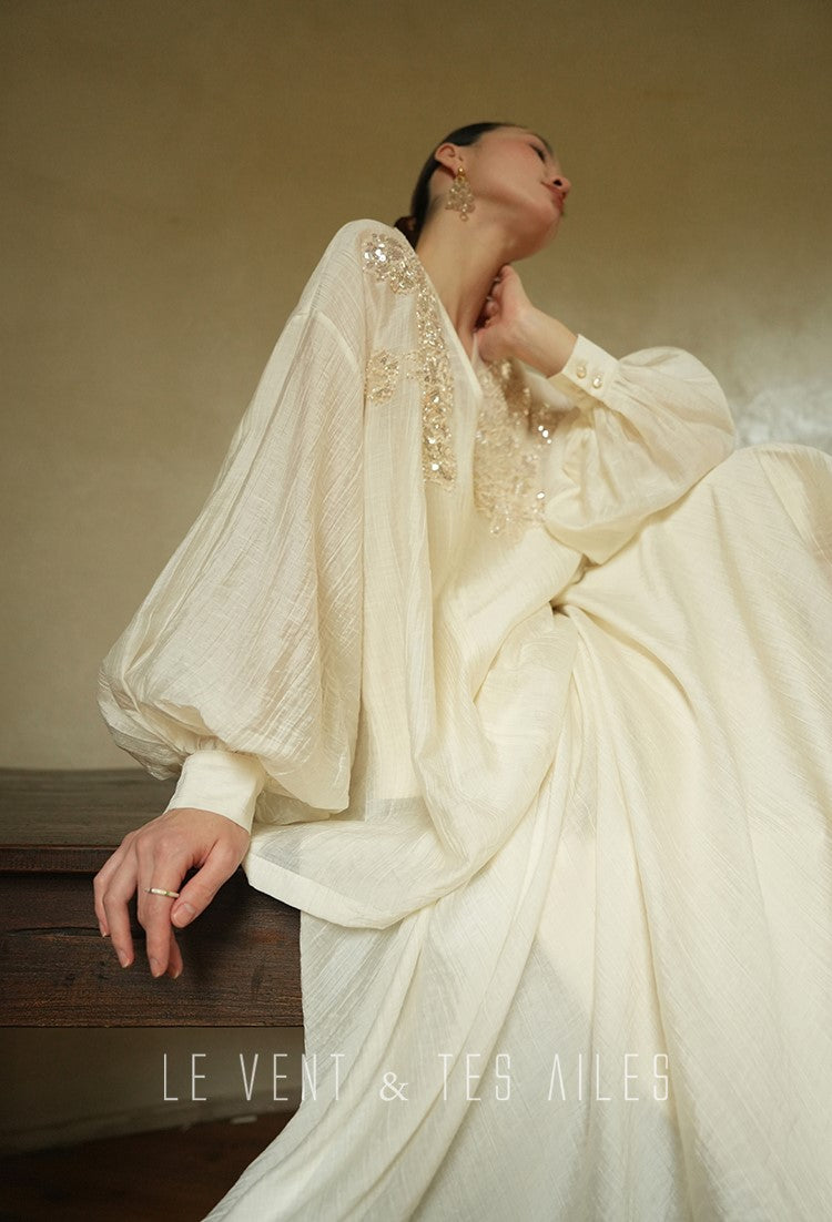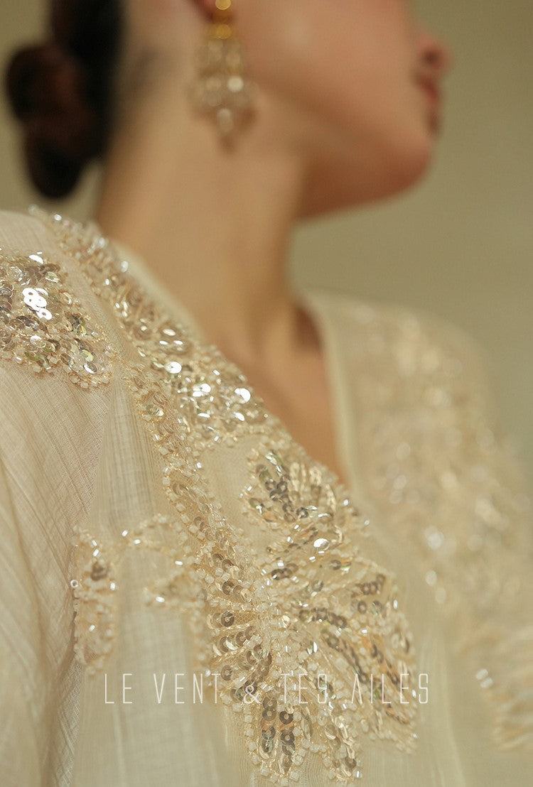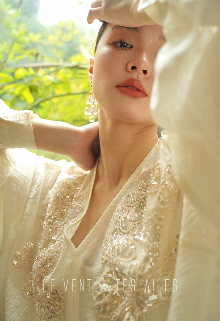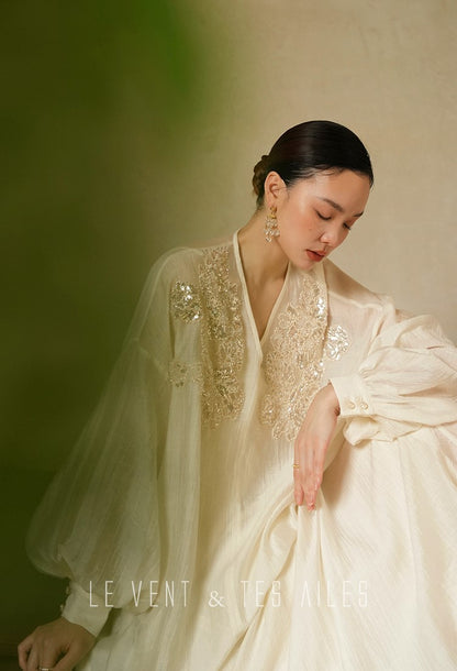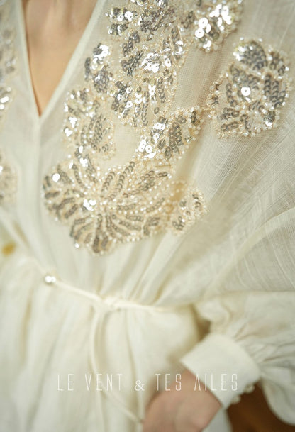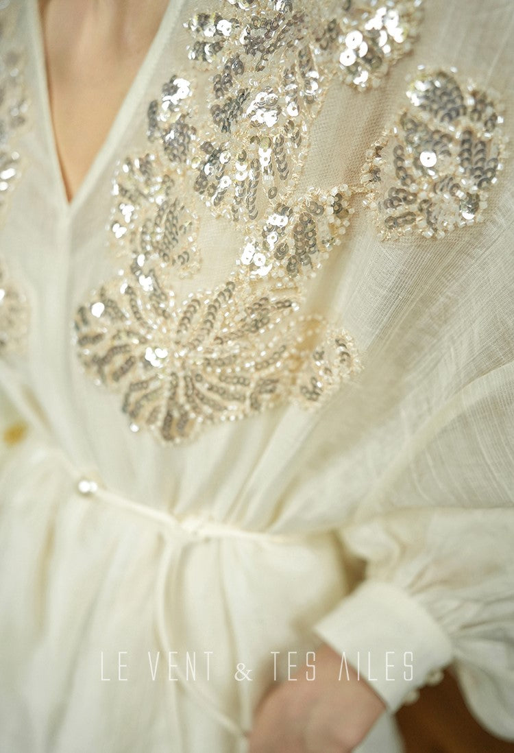 Elevate your wardrobe with LE VENT&TES AILES high-end ornate beaded embroidery luxury shirt suit dress. This luxurious and classy dress features intricate beaded embroidery for a touch of opulence and glamour. Perfect for those who appreciate the finer things in life.