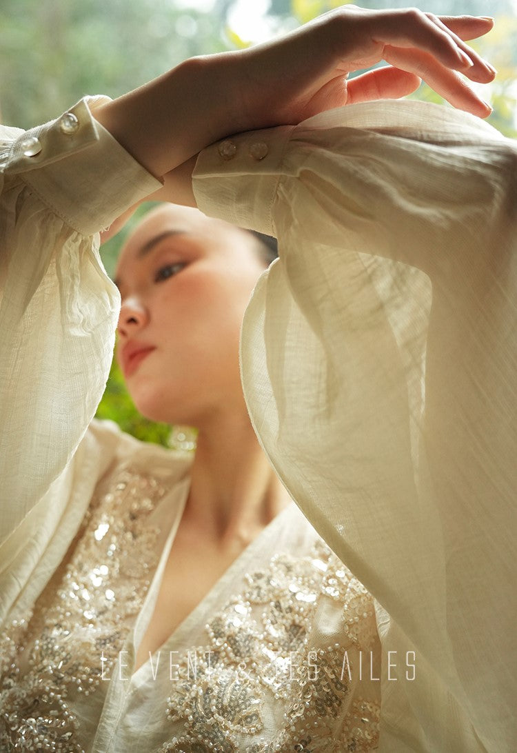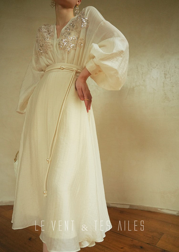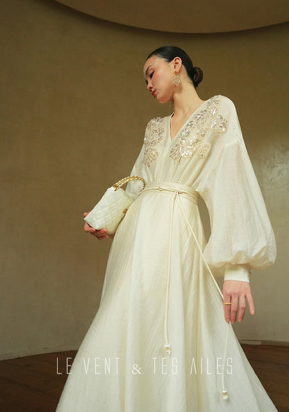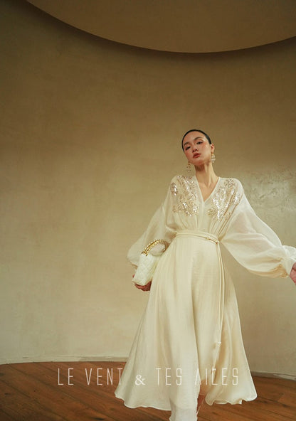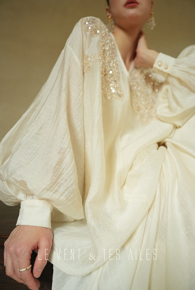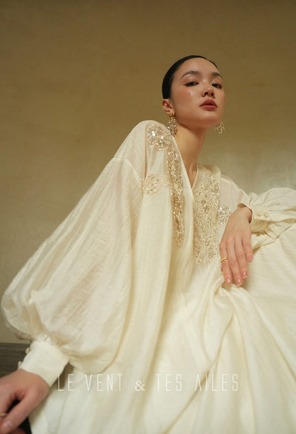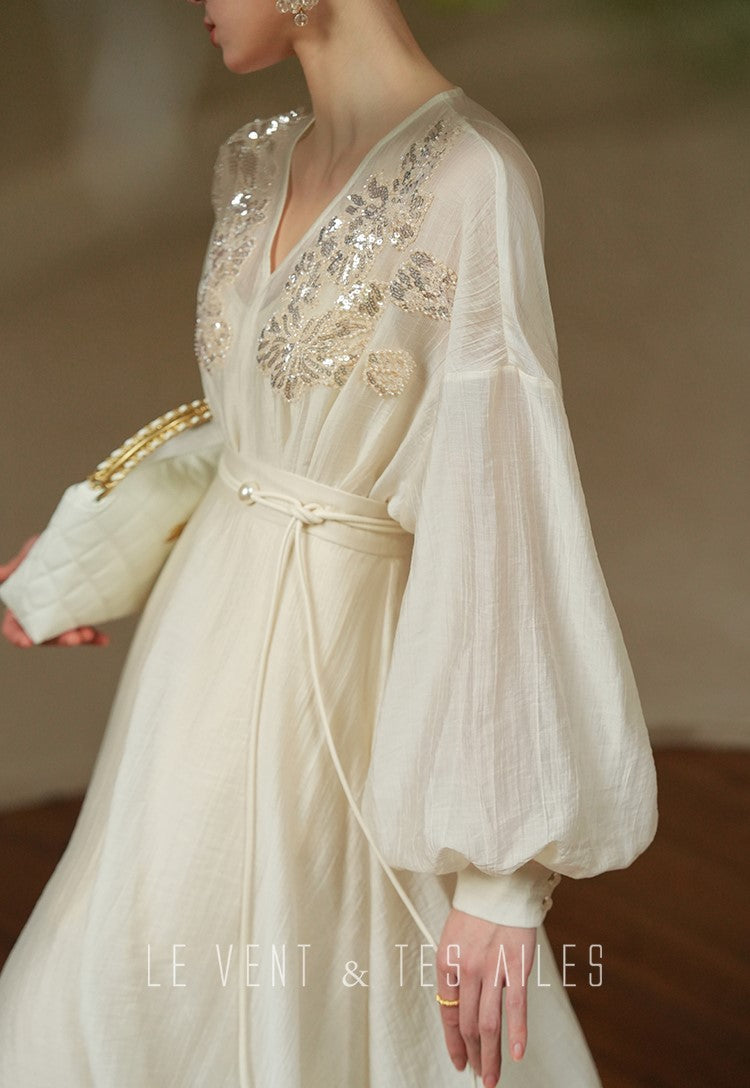 Elevate your wardrobe with LE VENT&TES AILES high-end ornate beaded embroidery luxury shirt suit dress. This luxurious and classy dress features intricate beaded embroidery for a touch of opulence and glamour. Perfect for those who appreciate the finer things in life.