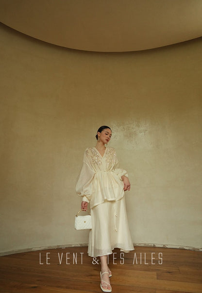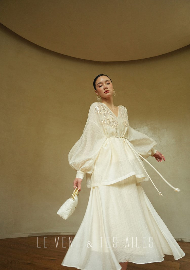 LE VENT&TES AILES high-end ornate beaded embroidery luxury top skirt suit - EVE