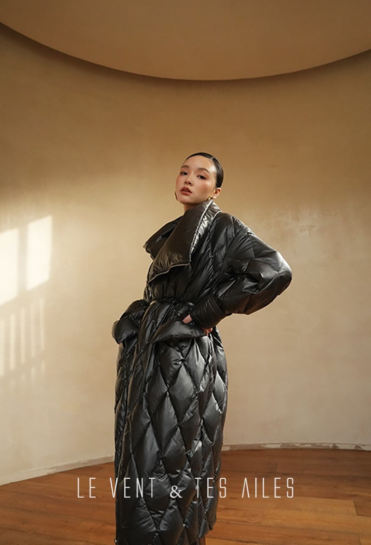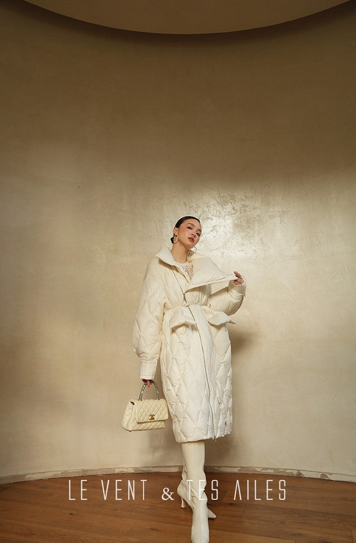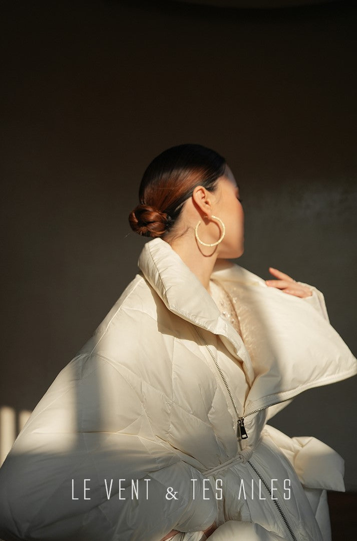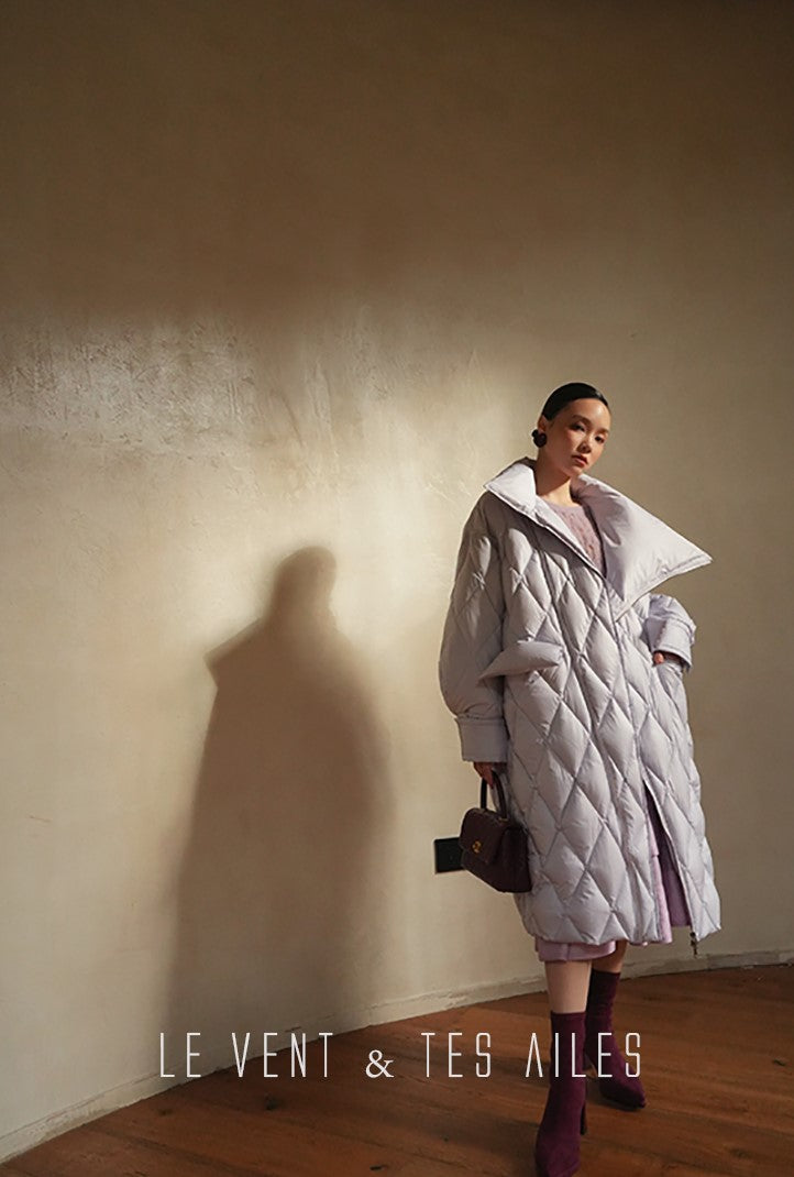 LE VENT&TES AILES Luxury High Cover Pressure Down Long Winter Jacket Coat -SZA