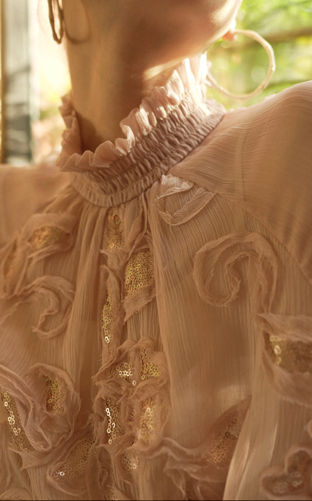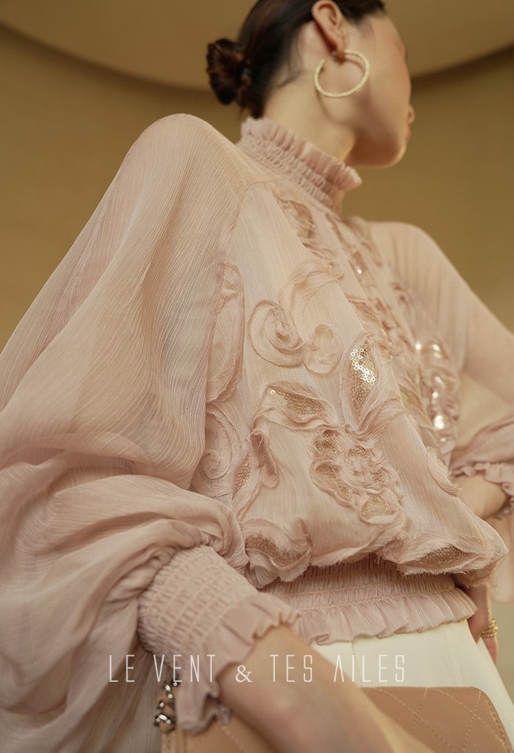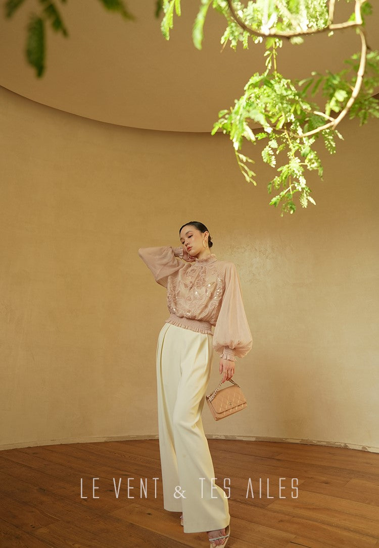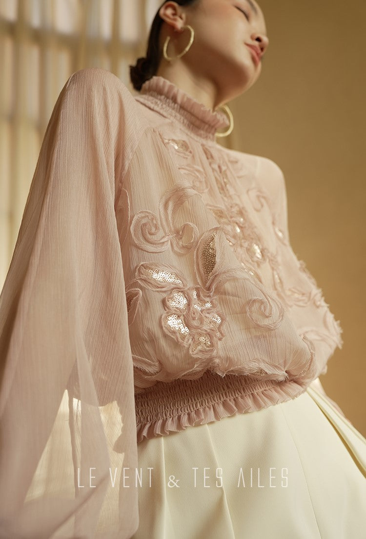 LE VENT&TES AILES Scarlet Mist Disc Sequin Tops Spring Long Sleeve Top - ANYA