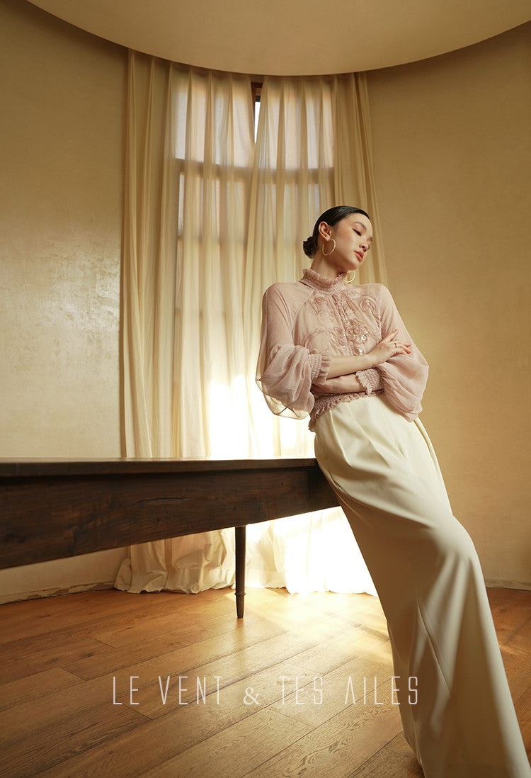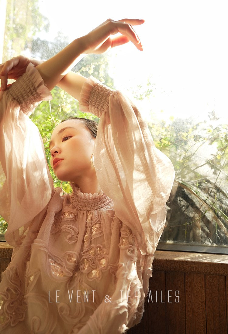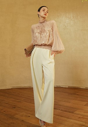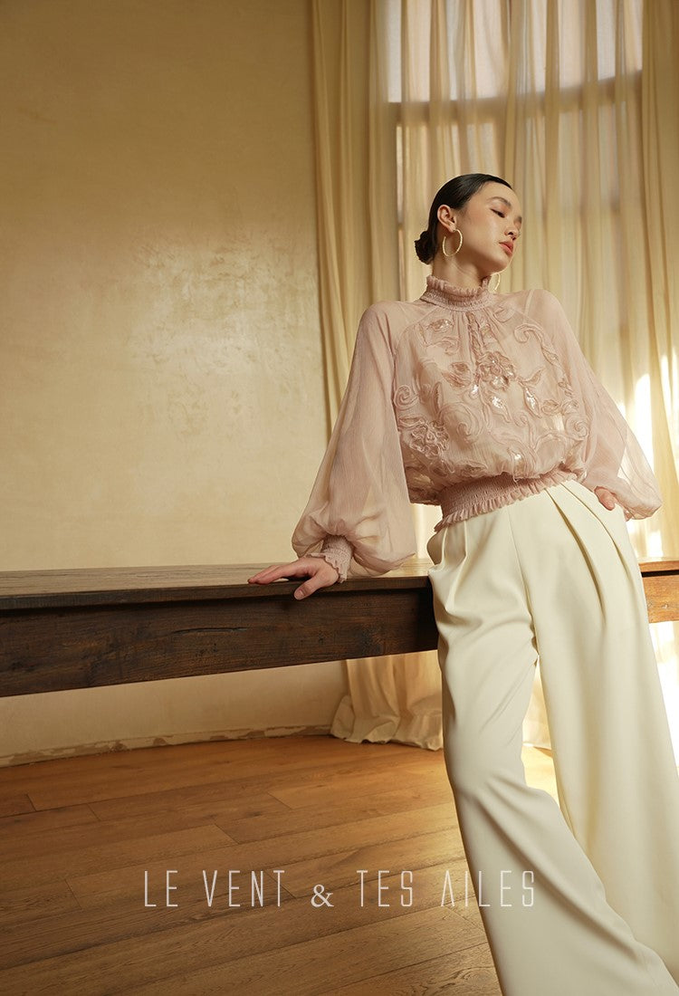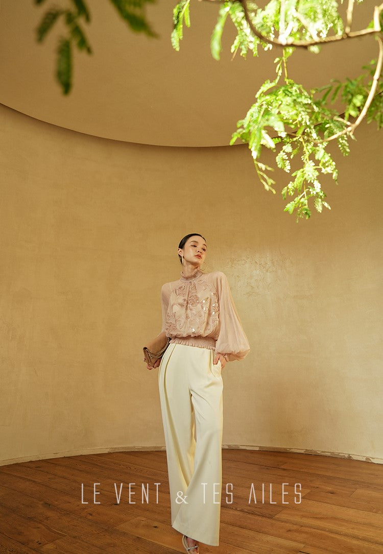 LE VENT&TES AILES Scarlet Mist Disc Sequin Tops Spring Long Sleeve Top - ANYA