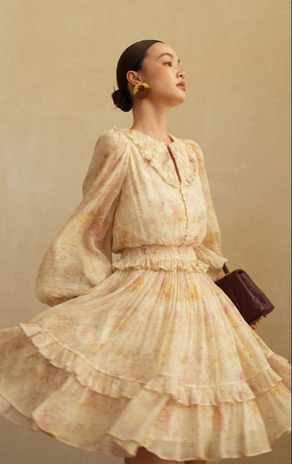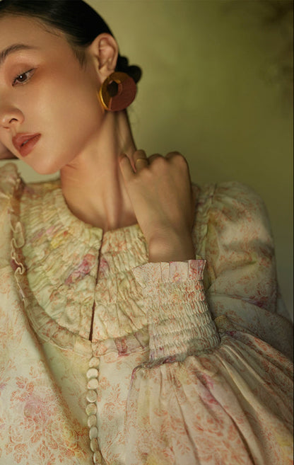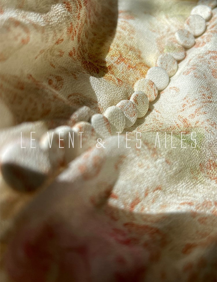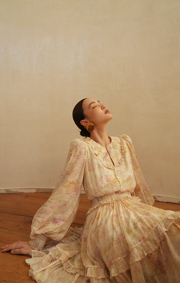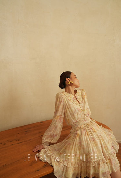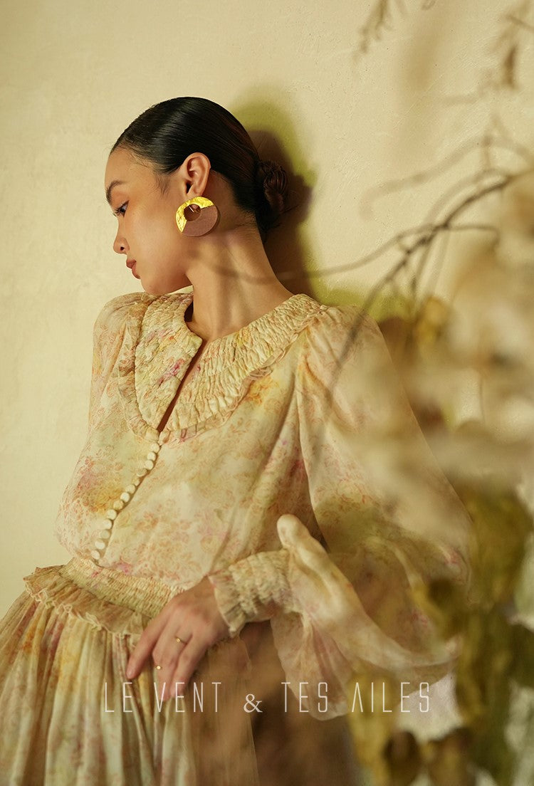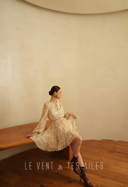 LE VENT&TES AILES vintage French print elegant flora silk cinched waist dress-ZITA
