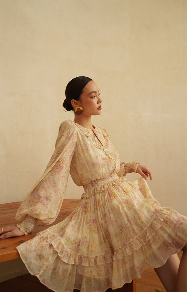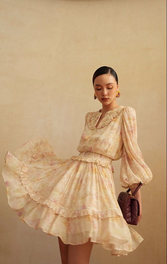 Experience timeless elegance with our LE VENT&TES AILES vintage French print elegant flora silk cinched waist slim dress - ZITA. Made from high-quality silk, this dress features a beautiful vintage French print and a cinched waist for a slimming effect. Elevate your style with this sophisticated and effortlessly chic dress.