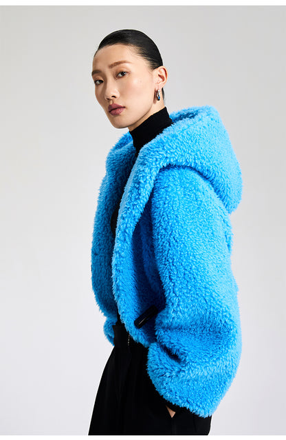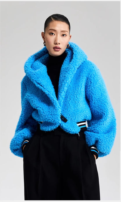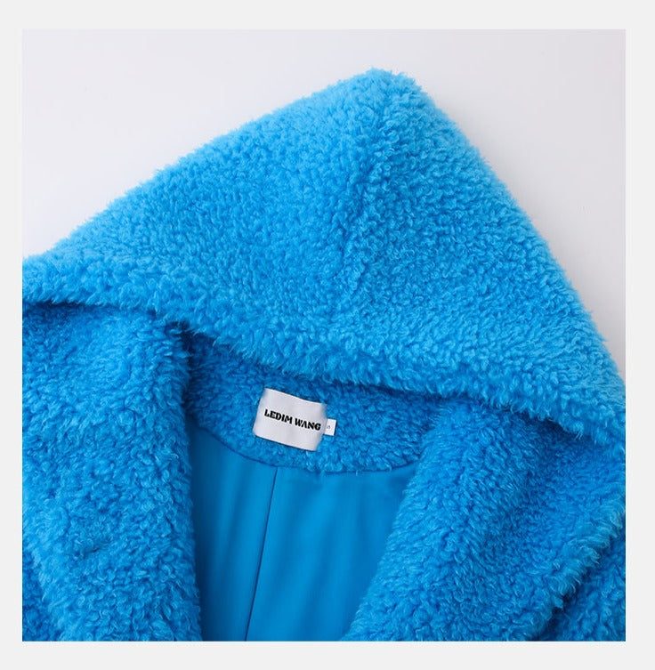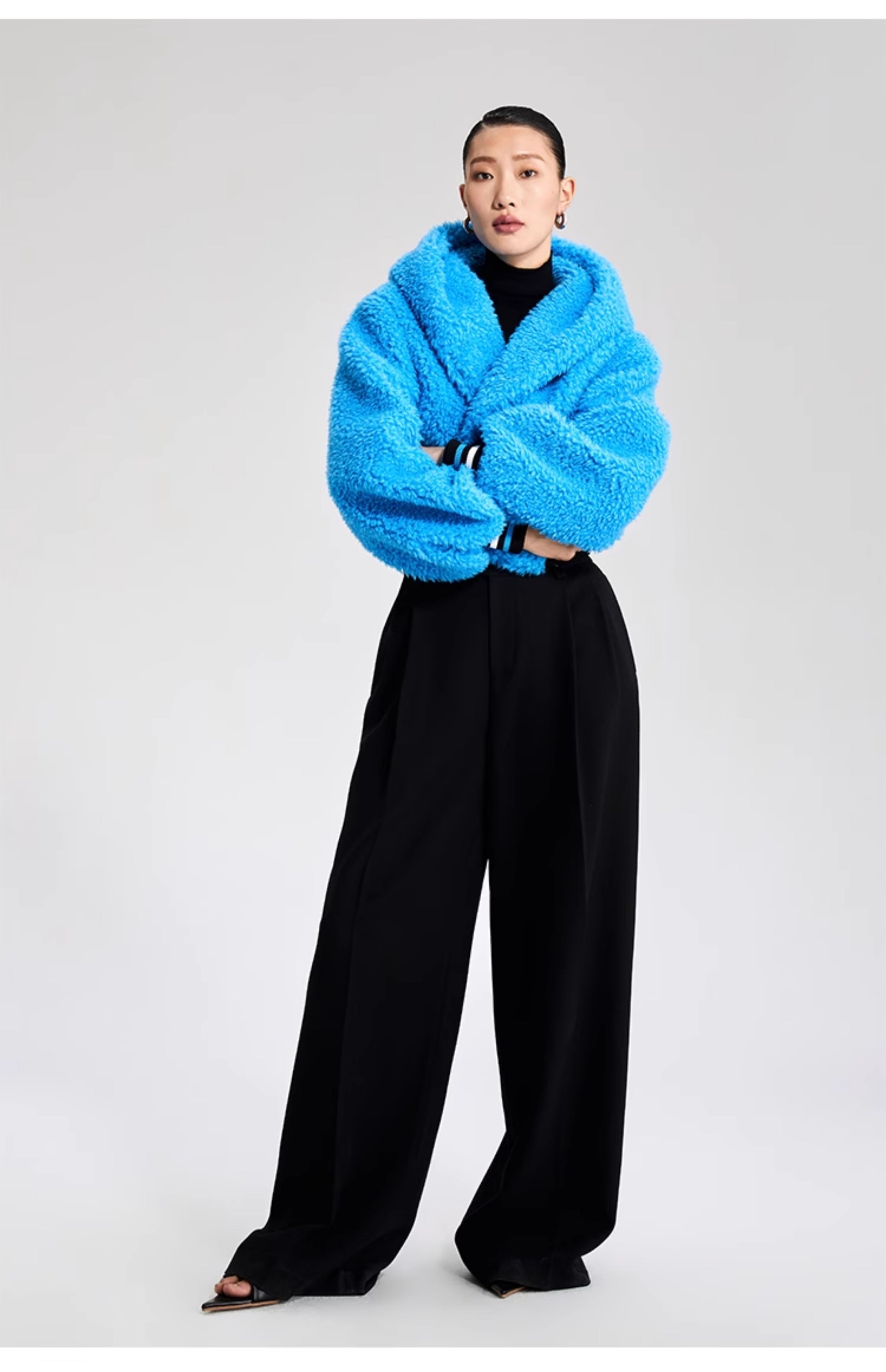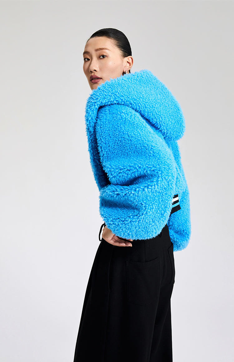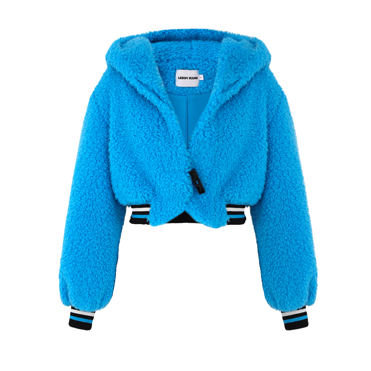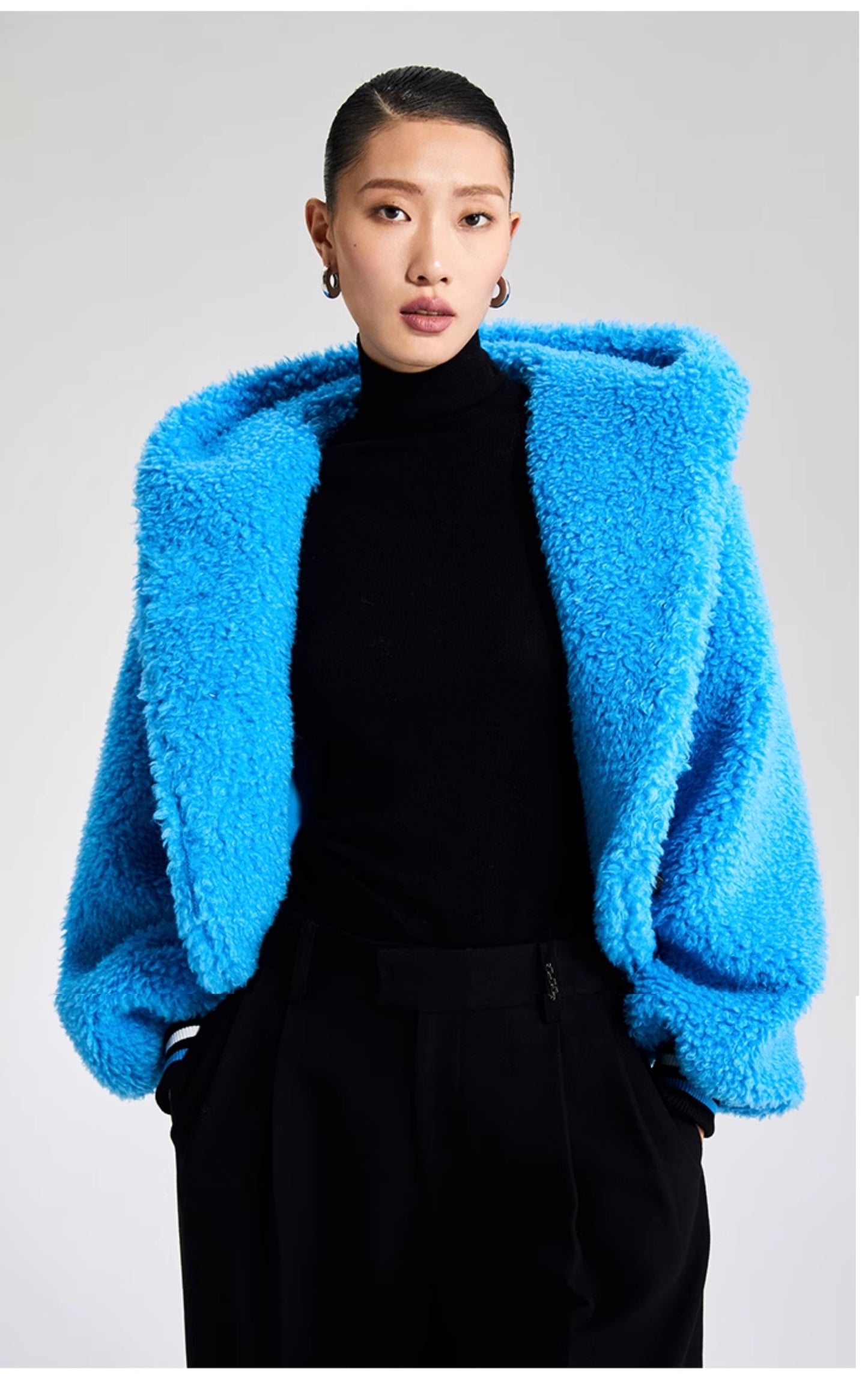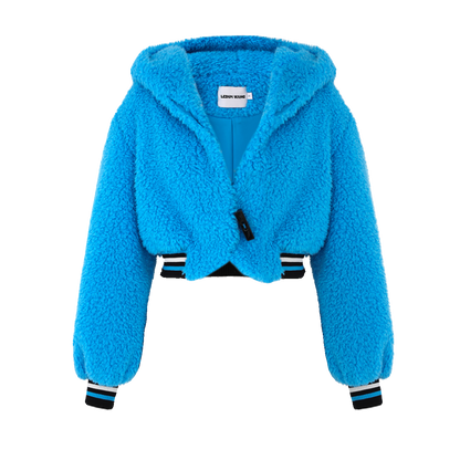 LEDI W croped winter faux lambwool blue fuzz coat - Llege
