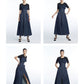 LEDI W fake two-piece denim midi long slit dress- Tete