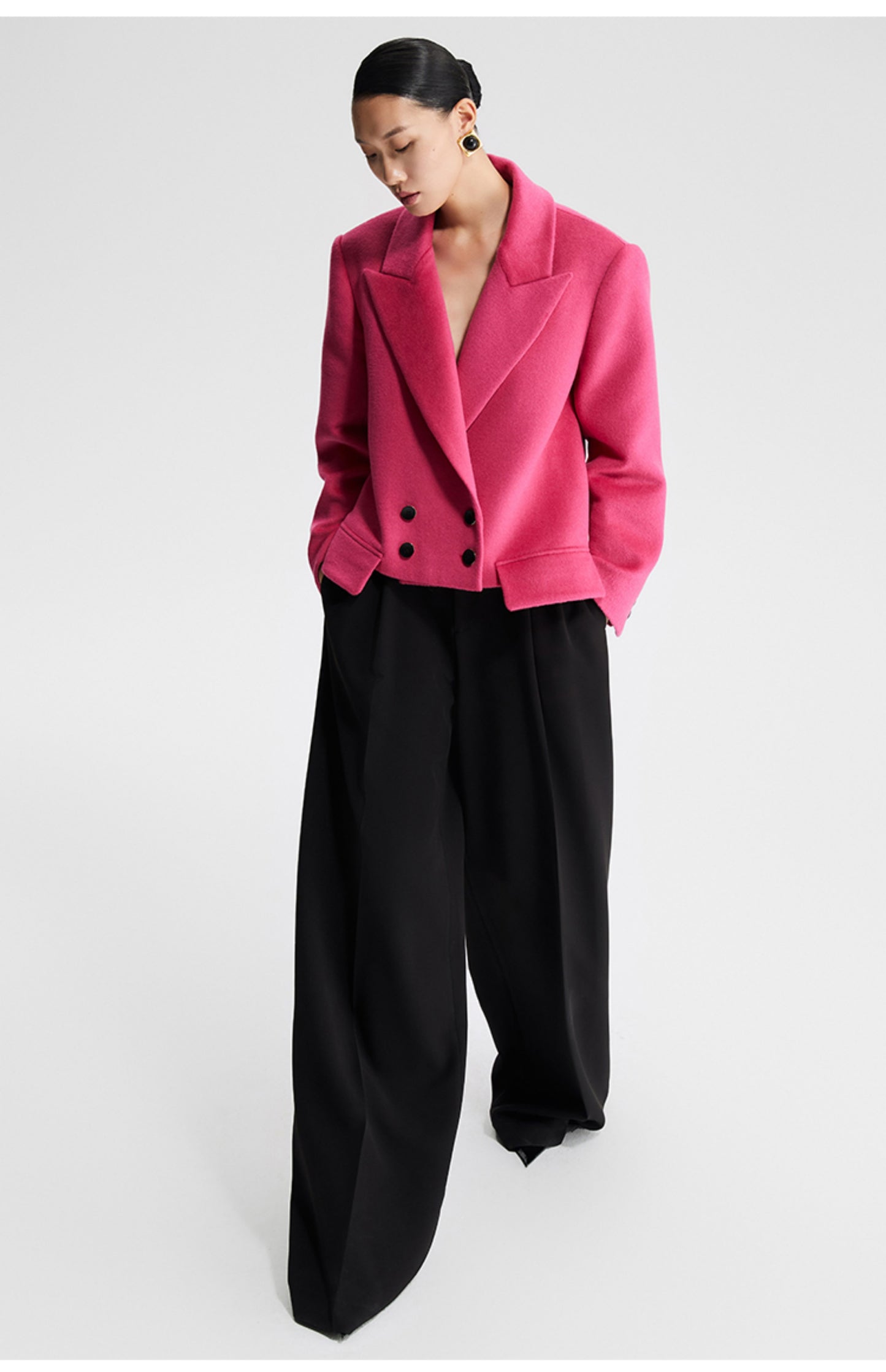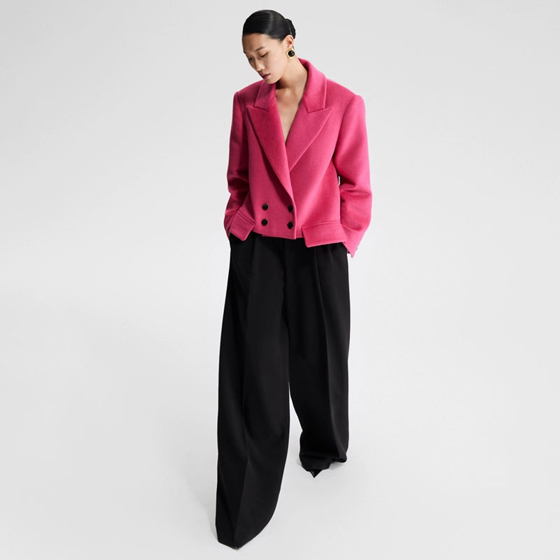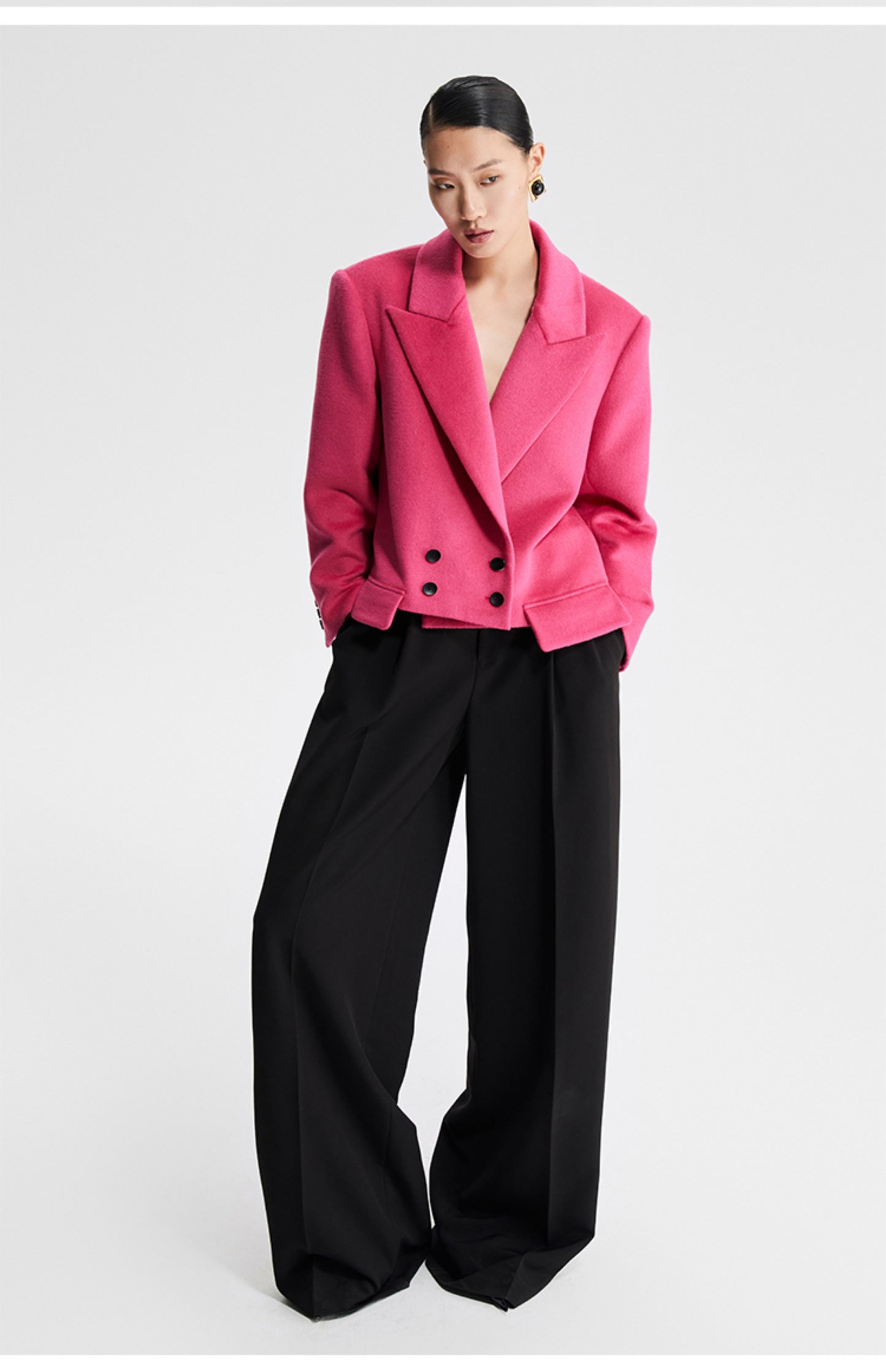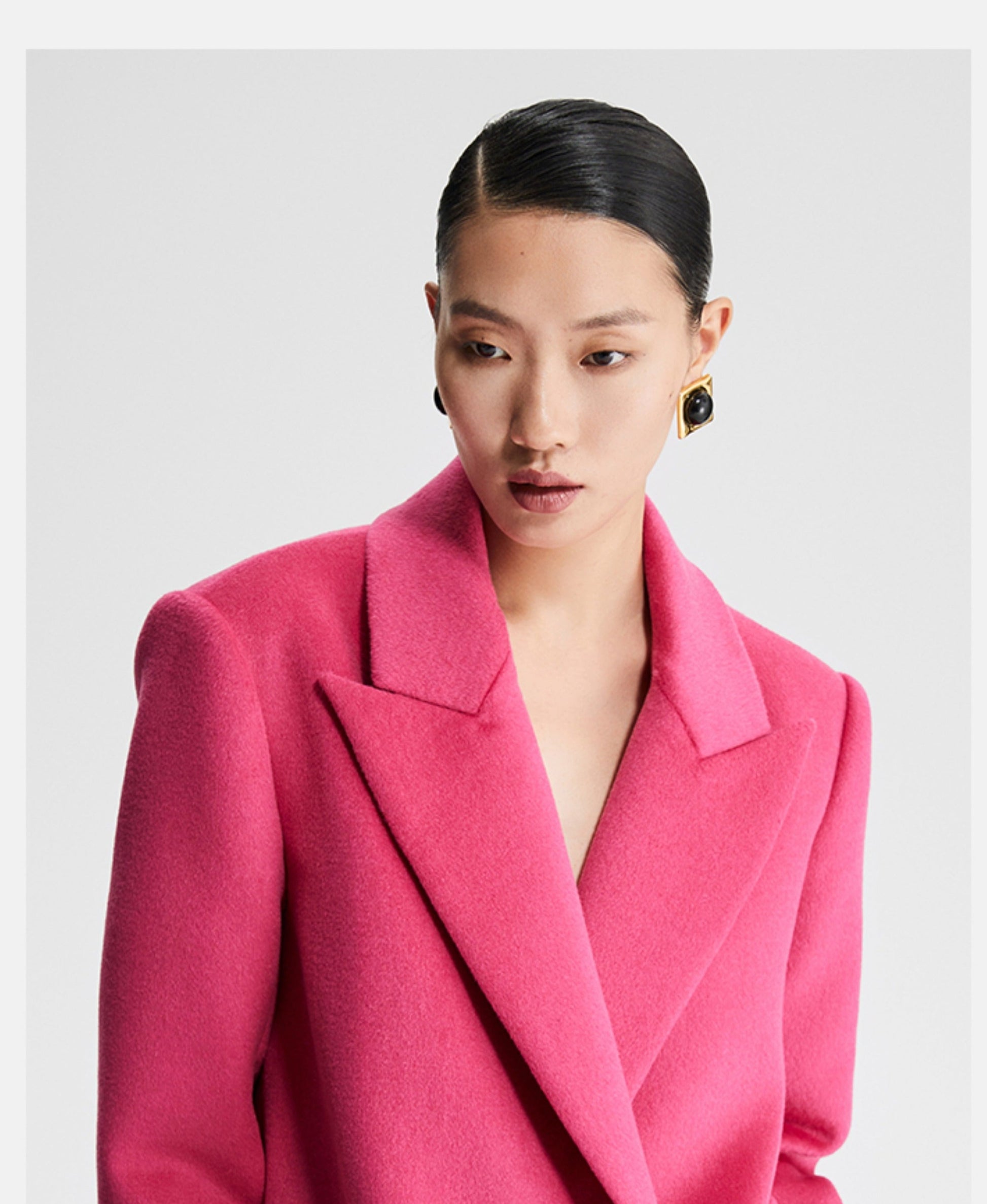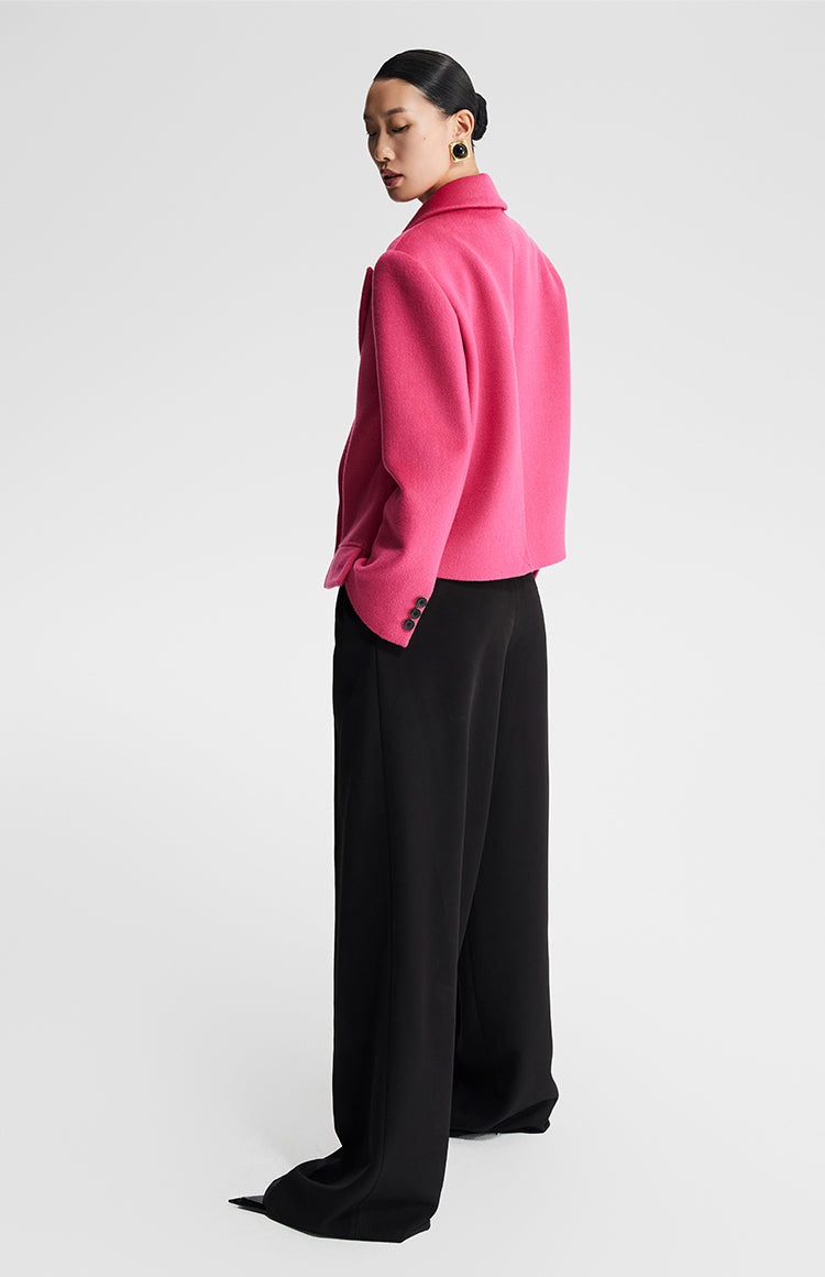 Introducing LEDI W's pink wool blazer, the perfect combination of timeless sophistication and modern trendiness. Crafted from sumptuous winter and fall-weight wool, this statement-making crop jacket is an effortless way to make an exclusive and elegant impact.