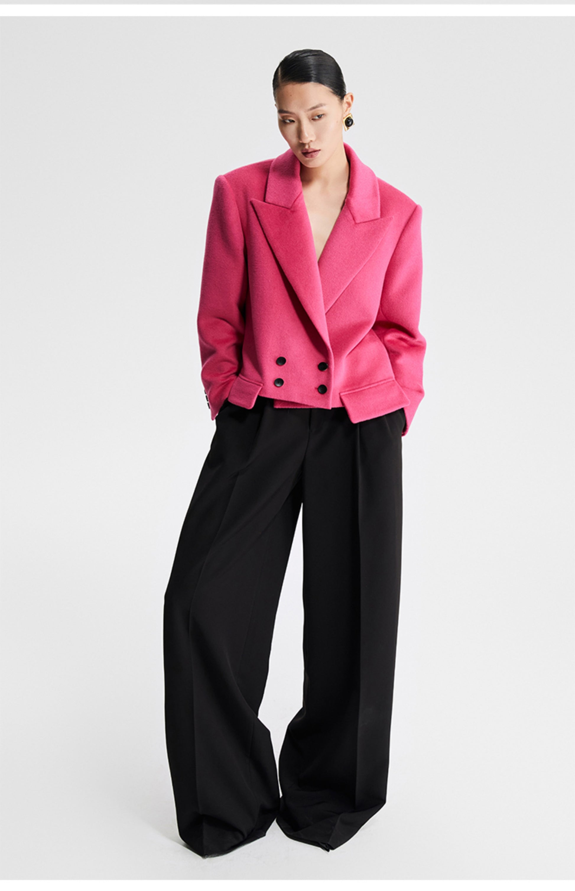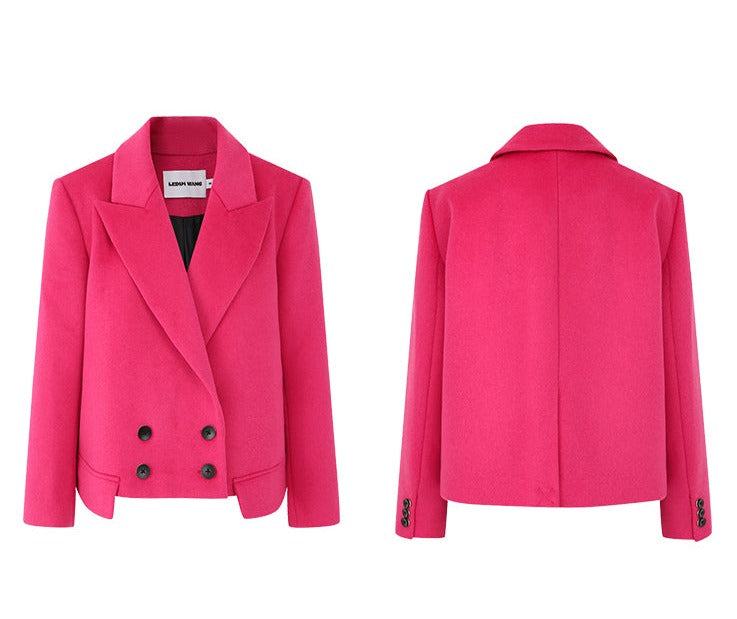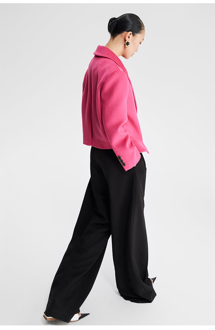 LEDI W fall winter loose pink wool crop jacket blazer - Impio